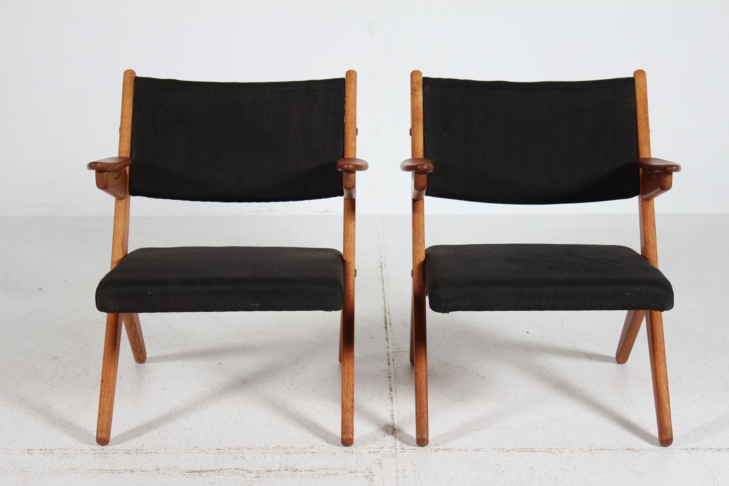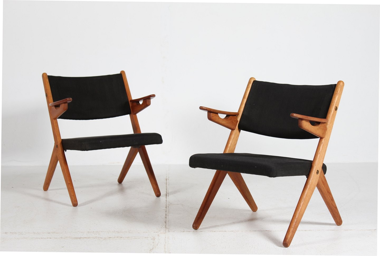 Par easy chairs fra 1960'erne fremstillet af massiv eg