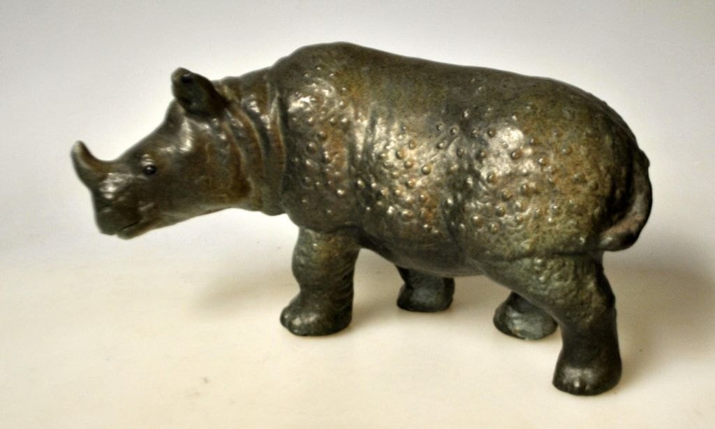 Carlsen, Paul Hauch (1921 - 2006) Danmark: Et næsehorn. Stentøj. Grønglaseret. Signeret: PHC Samsø. L.: 20 cm. H.: 11 cm.