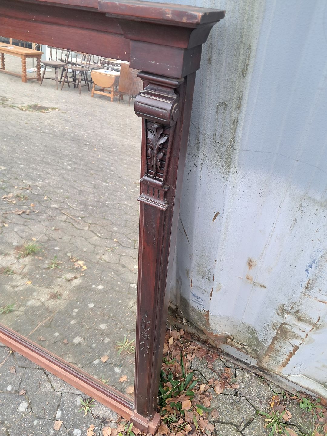 Kæmpe spejl i fineret mahogni, fra 1910erne.