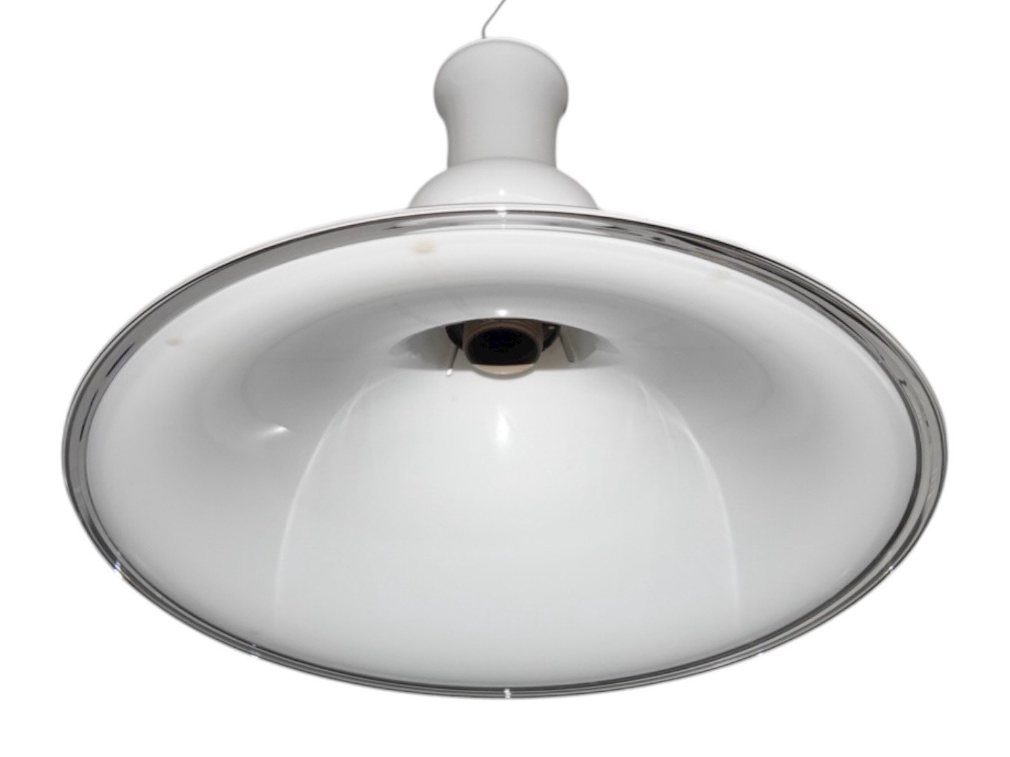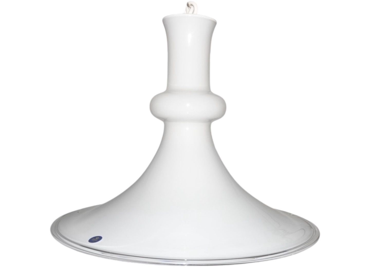 Holmegaard / Royal Copenhagen, stor Etude pendel i hvidt glas med den yderste kant med klart glas.
