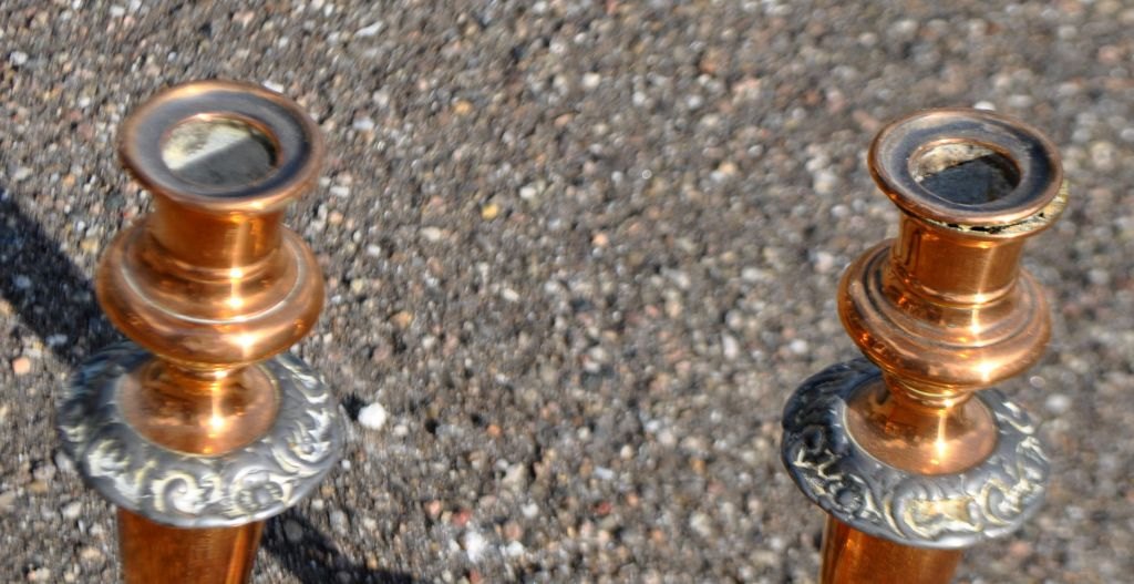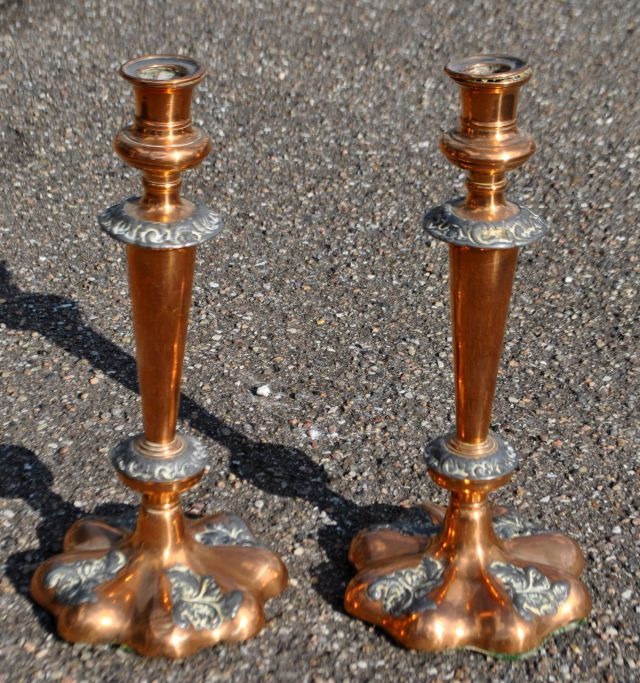 Et par engelske kobberstager med tin, 19. årh.