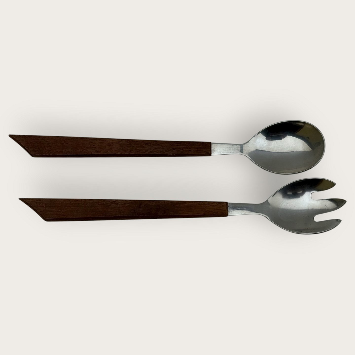 Con Form, Salad set in teak and steel from the 1960s, in original box, 26.5cm long *Box somewhat worn otherwise in good condition*