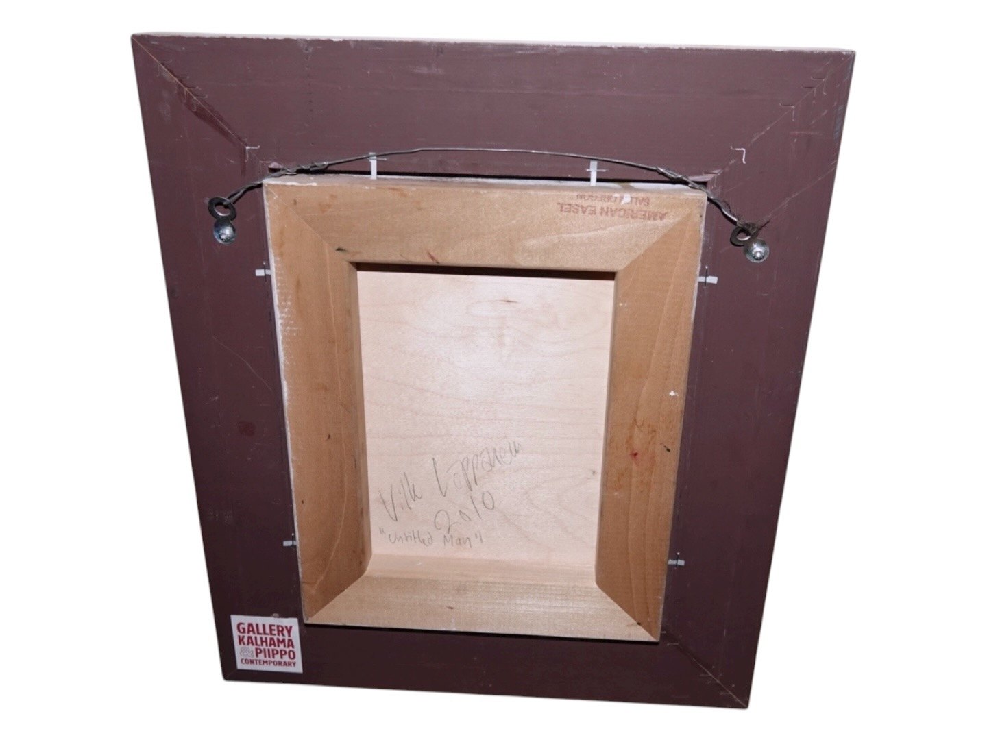 Akryl og oliemaleri af nøgen mand i bred sølvramme fra 2010.