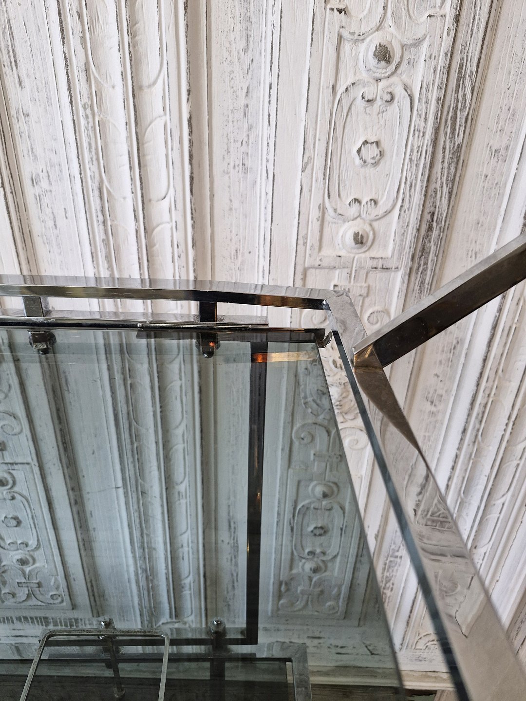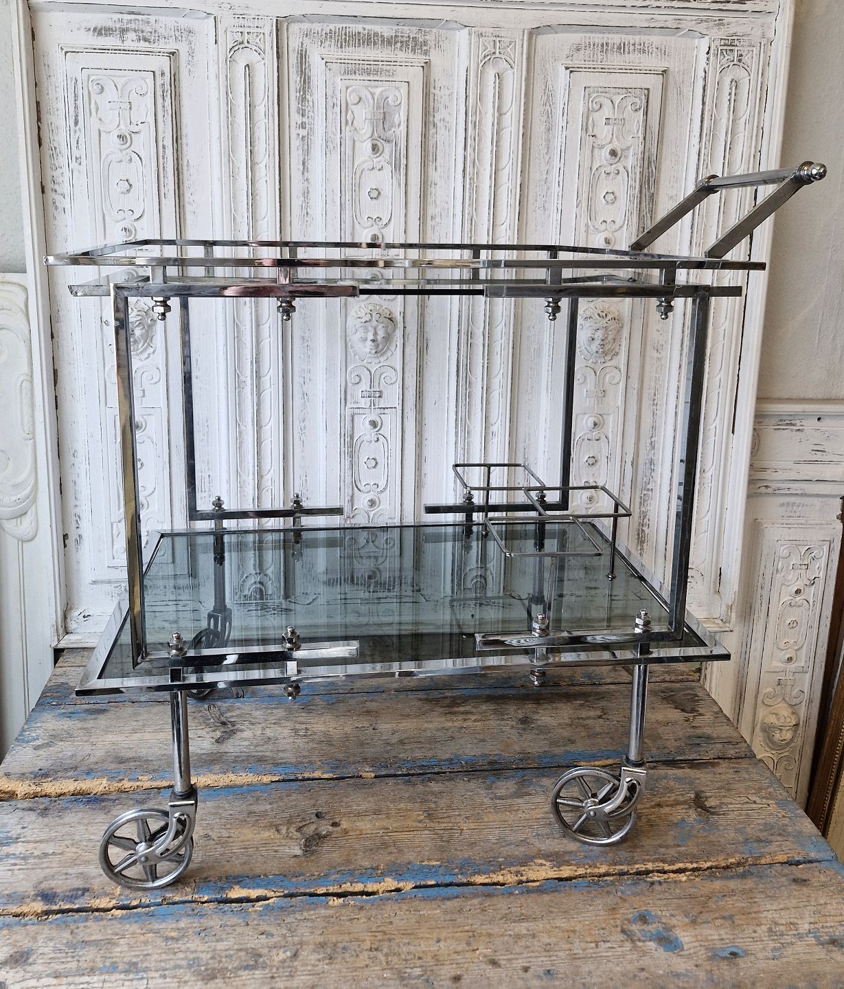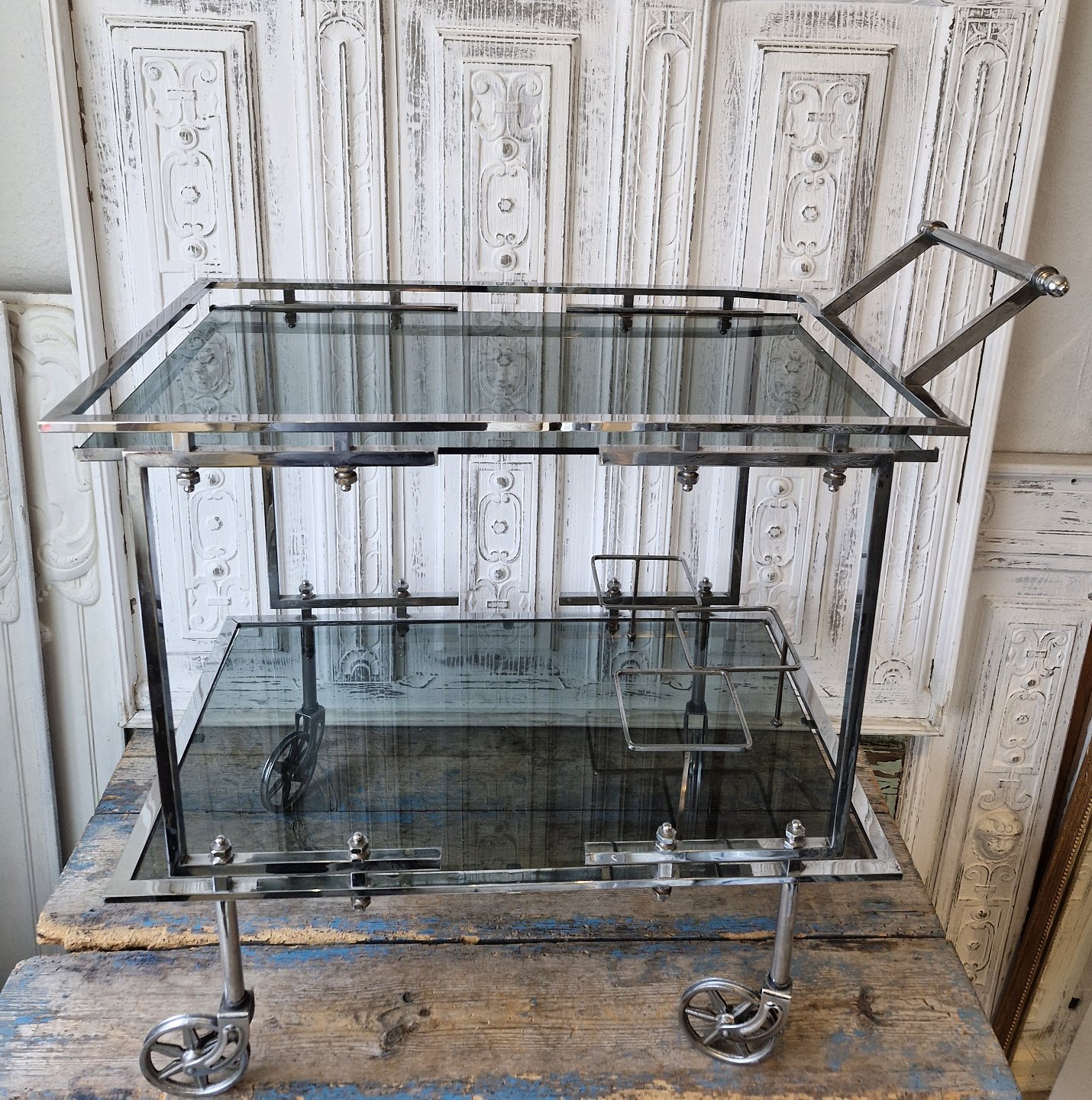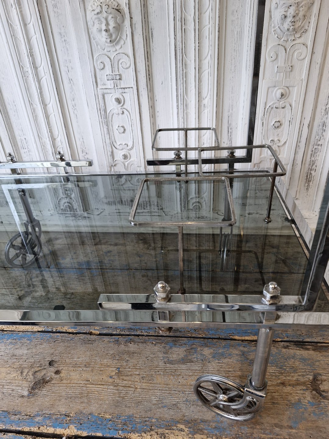 Vintage barbord med stel og hjul i forkromet stål