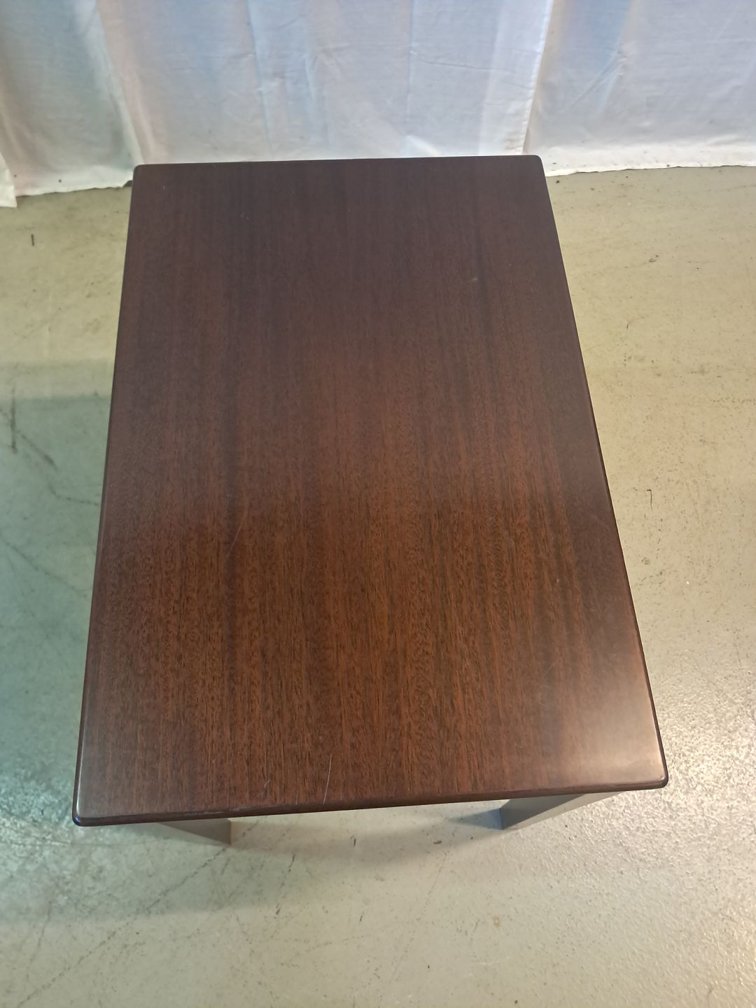 Lampebord i fineret mahogni, fra 1980erne.