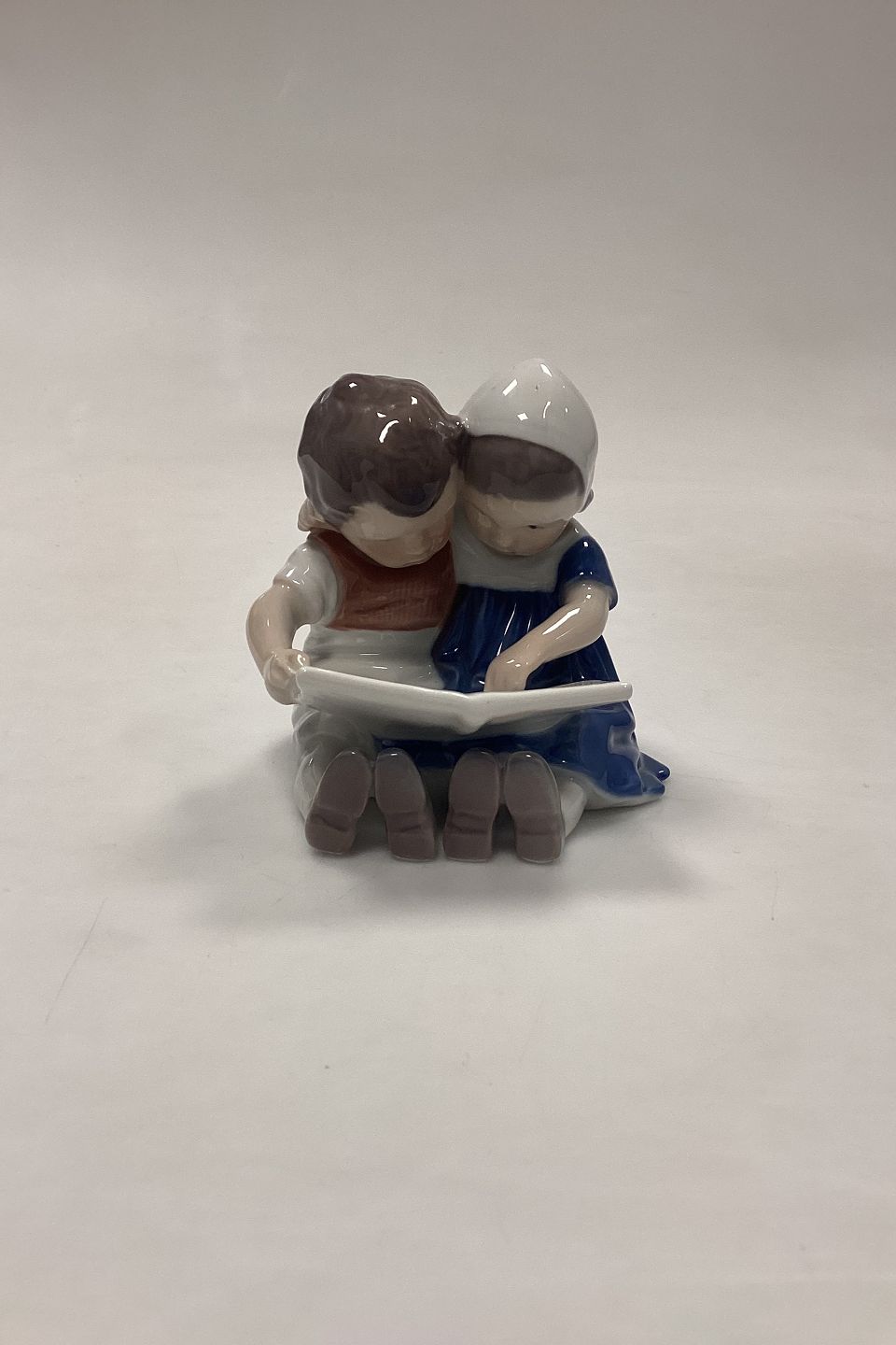 Royal Copenhagen Figur Læsende Børn No. 402. Designet af Ingeborg Plockross Irminger.