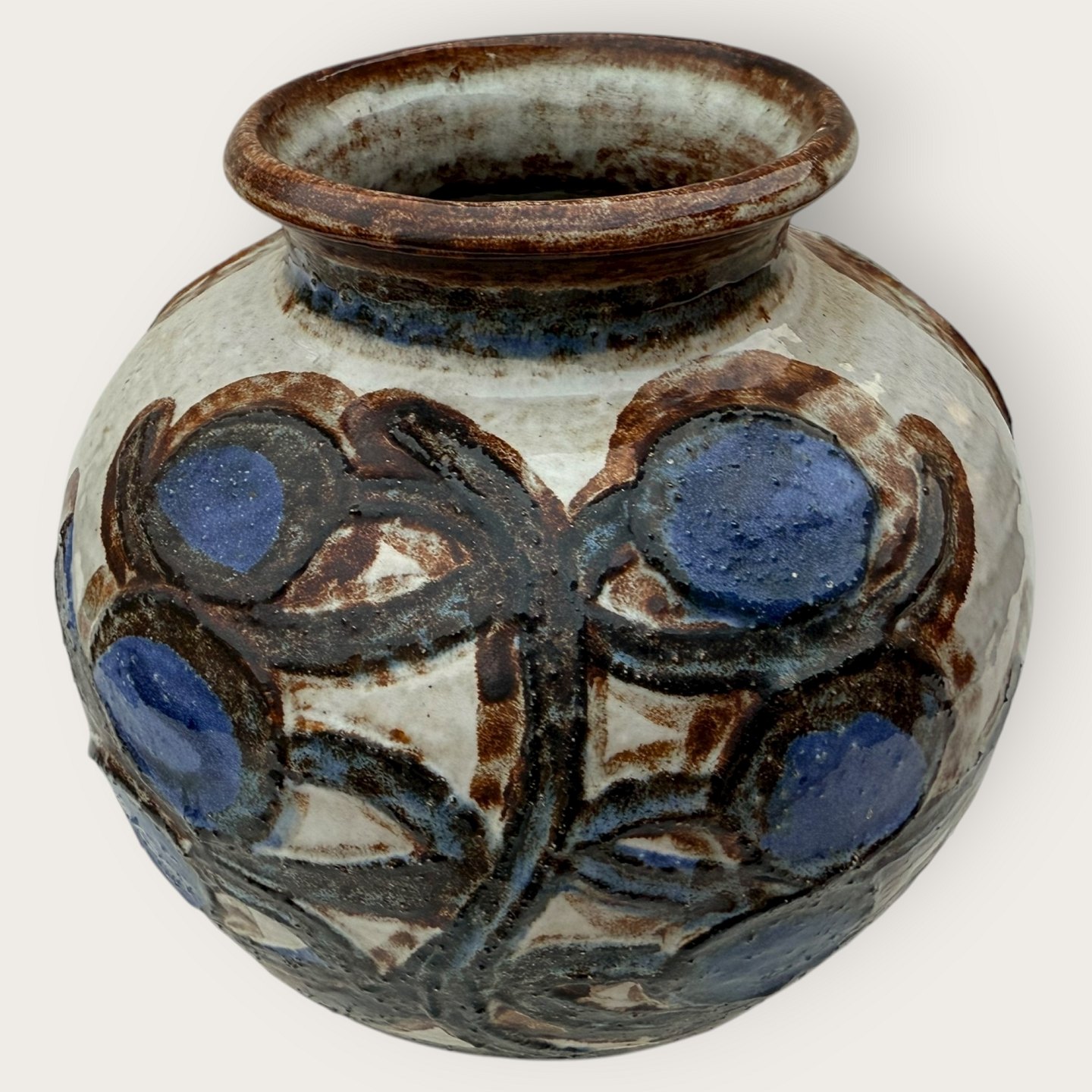 Bornholmsk keramik, Søholm, Stor rund vase, Ca. 21cm i diameter og ca. 21cm høj *Pæn stand*