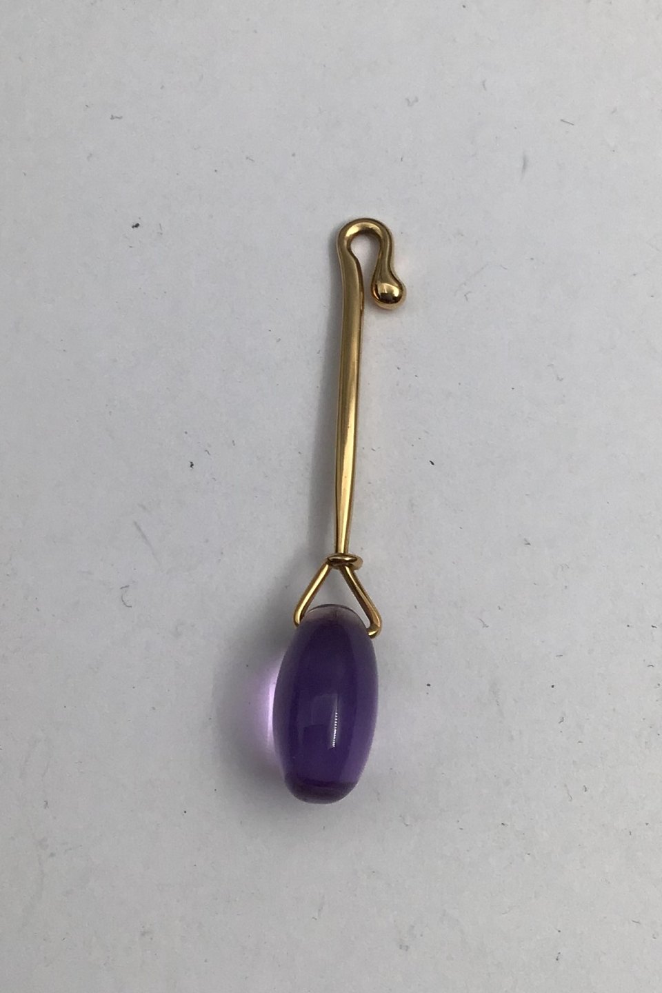 Georg Jensen 18K Guld Vedhæng Dew Drop No. 1128 Ametyst Torun
