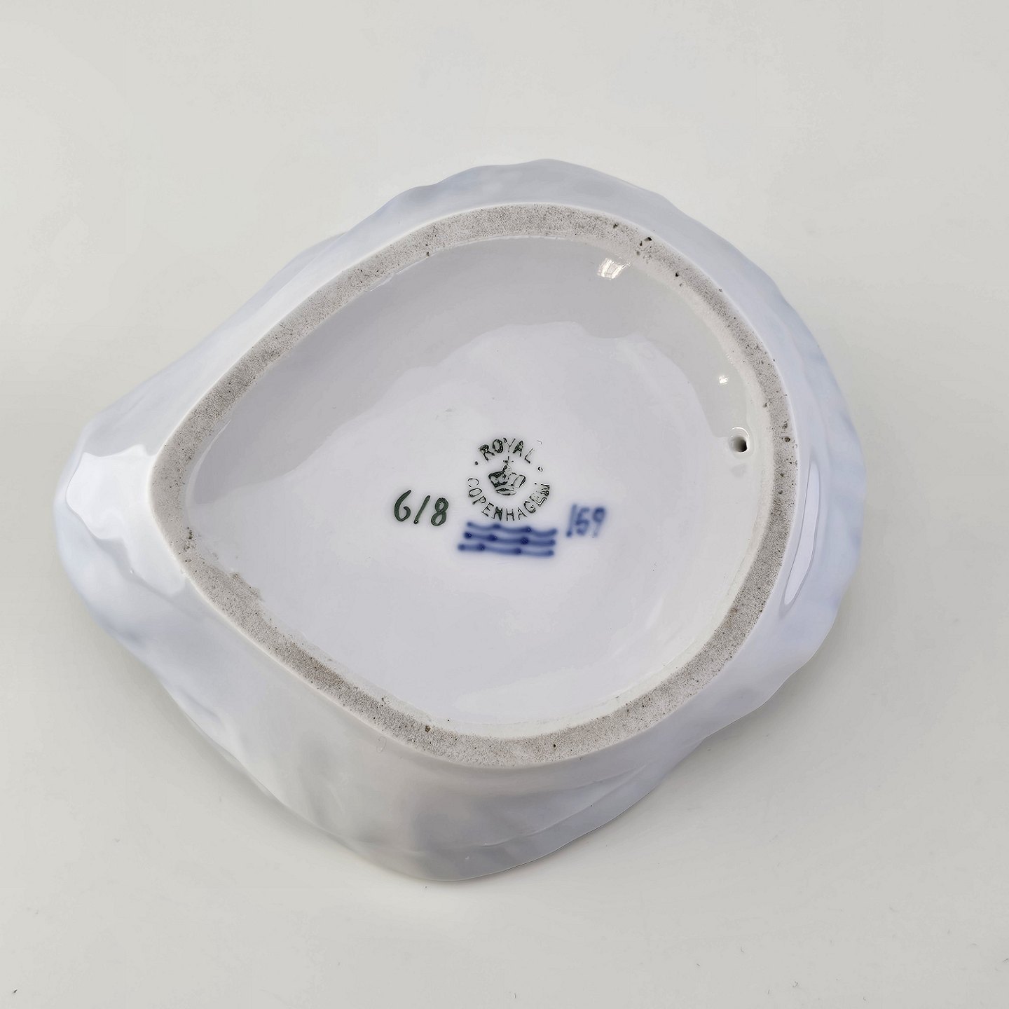 Sjælden skål i kongeligt porcelæn i art nouveau stil med form af to muslingeskaller med en fisk