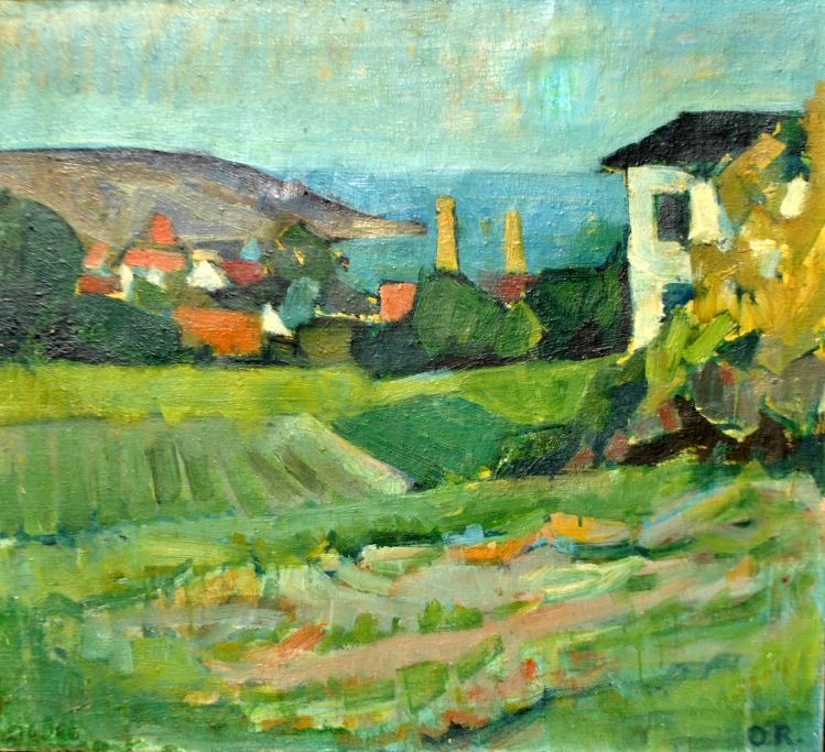 Dansk kunstner (20. årh.): Byparti - Bornholm.