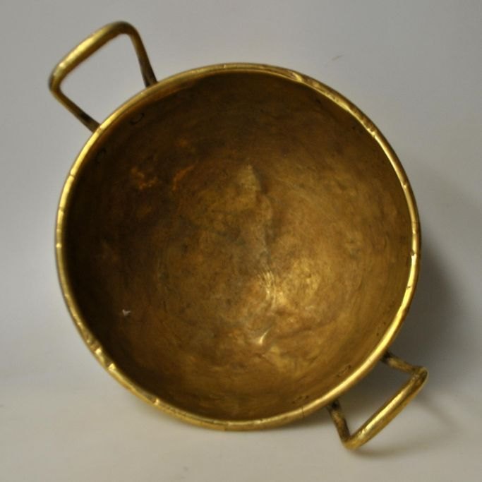 Apoteker øreskål, 19. årh. Danmark. Skål med to bronze hanke. H.: 16 cm. Dia.: 22 cm.