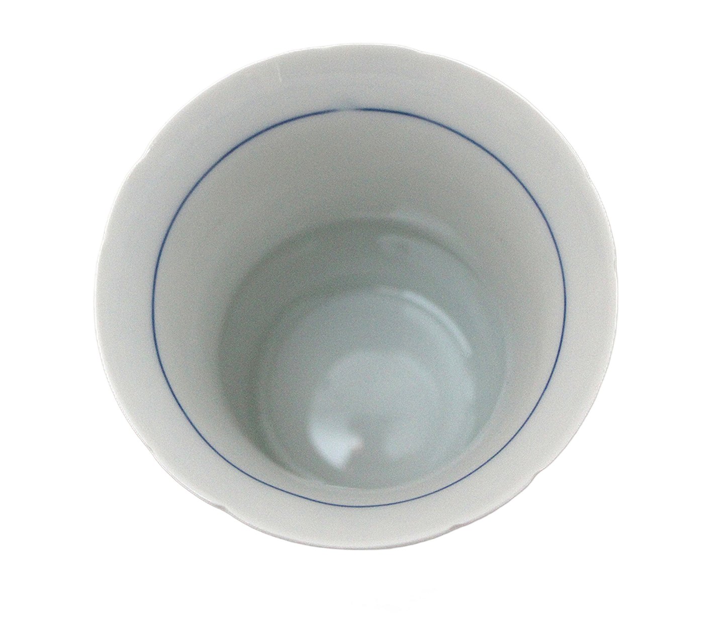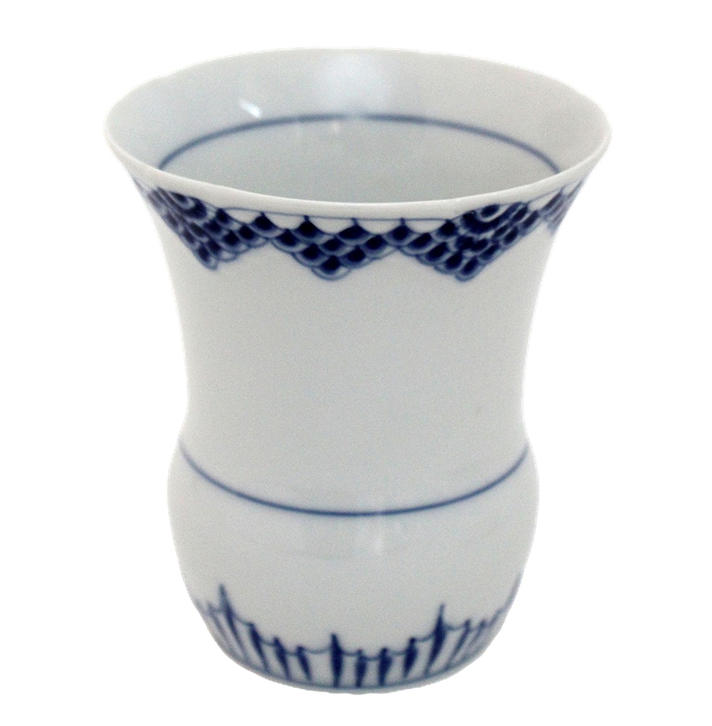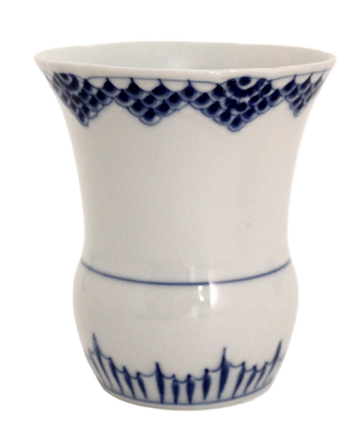 Bing & Grøndahl, Kronberg, Vase. Hvid glasur og blå dekorationer. Nr. 677. Produceret fra 1970-1983. Højde 10,5 cm. Øverste diameter 9 cm. Sjælden. Fin stand med let brudt indvending blå kantstreg. II sortering. Pris: 350 kr. stk. Lager: 1