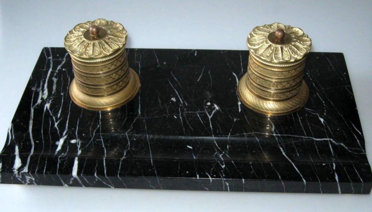 Fransk skrivesæt i bronze og marmor, 19. årh.
