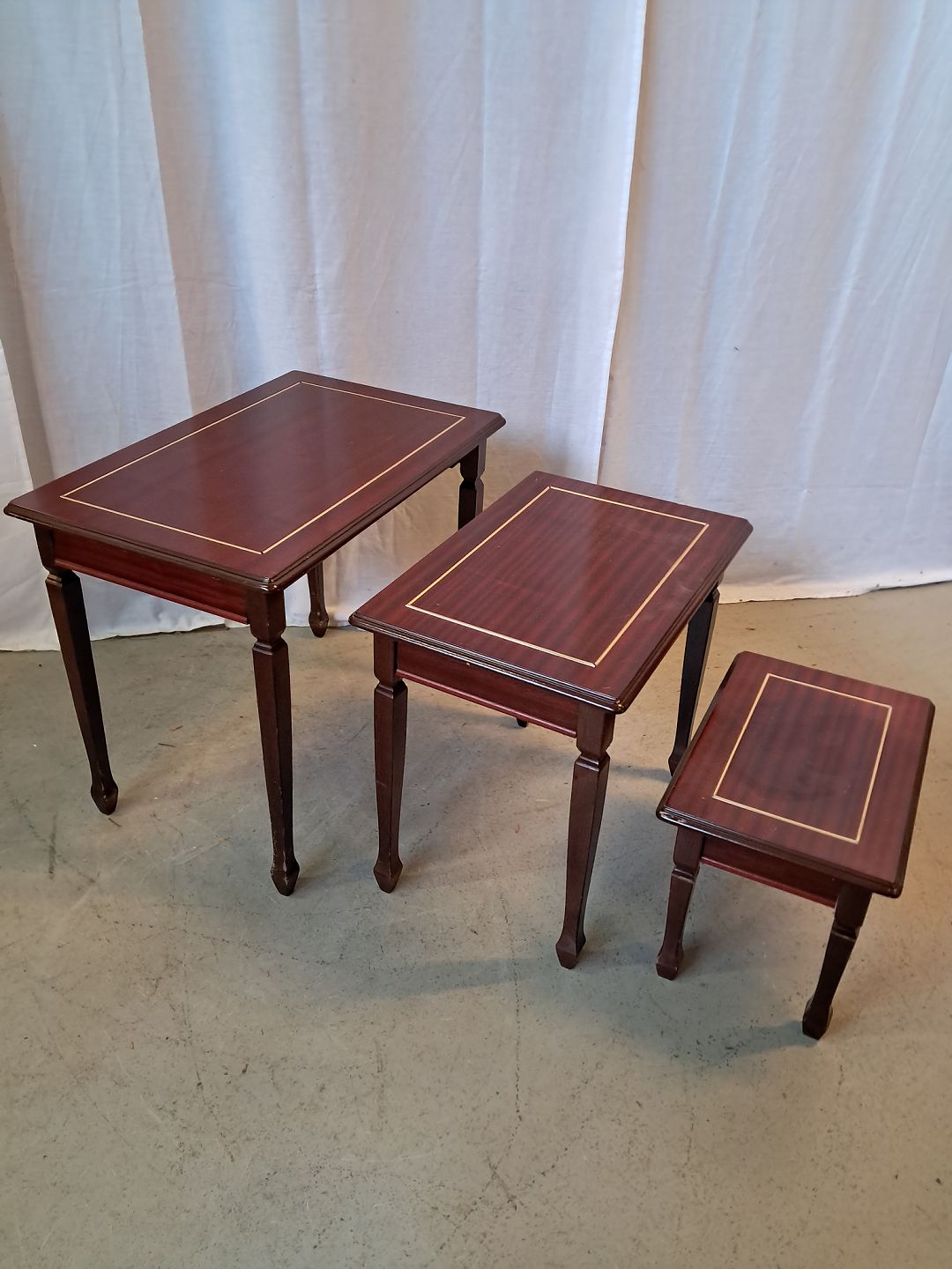 3 Indskudsborde i fineret mahogni, fra 1990erne.