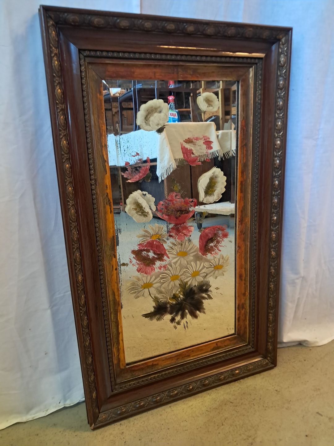 Spejl med påmalet blomster, fra 1920erne.