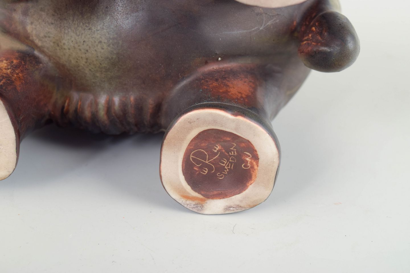 Gunnar Nylund (1904–1997) was one of Rörstrand’s leading designers and a central figure in Nordic modernism. His work from the 1940s and 50s is characterised by sculptural forms, experimental chamotte surfaces, and subtle glaze tones.