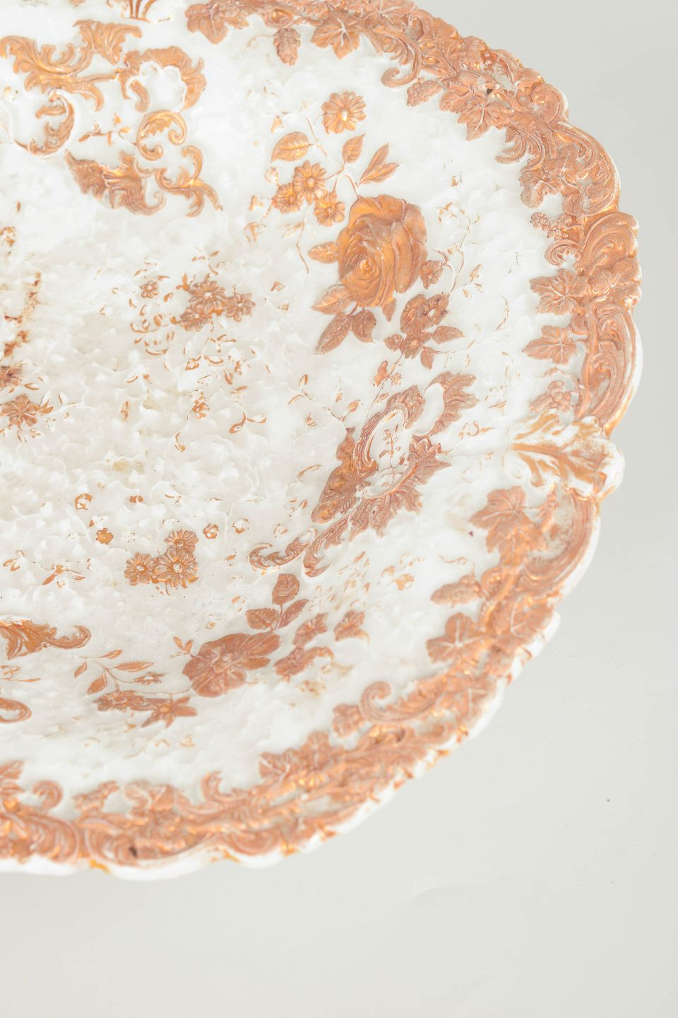 Material: Porcelain with hand-painted gilt/copper decoration.