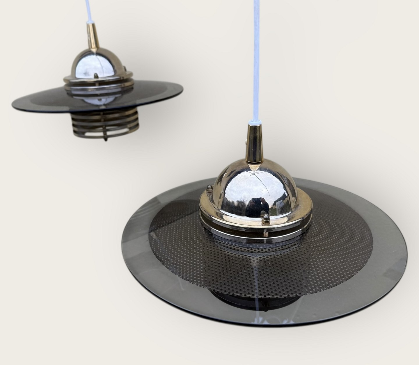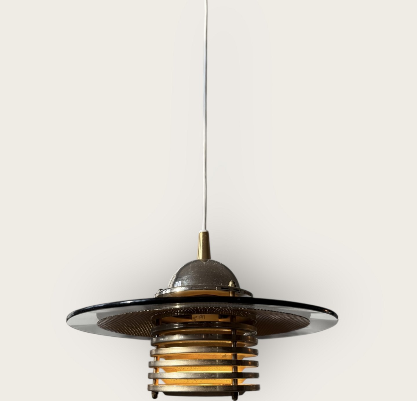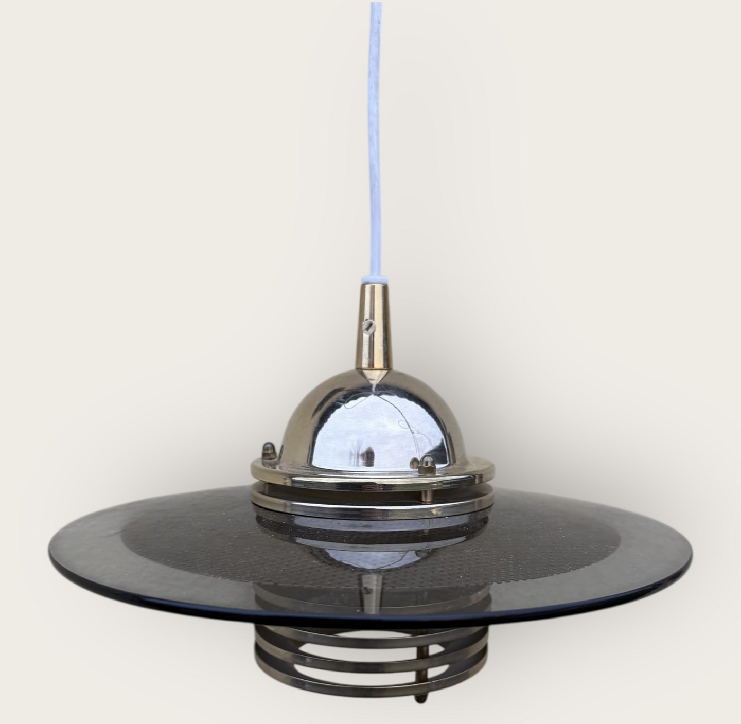 Jan-Eskild Eskildsson, Belid, Sverige, Reflektor Loftlampe i røgfarvet glas og messing, Diameter 29cm *pæn stand*