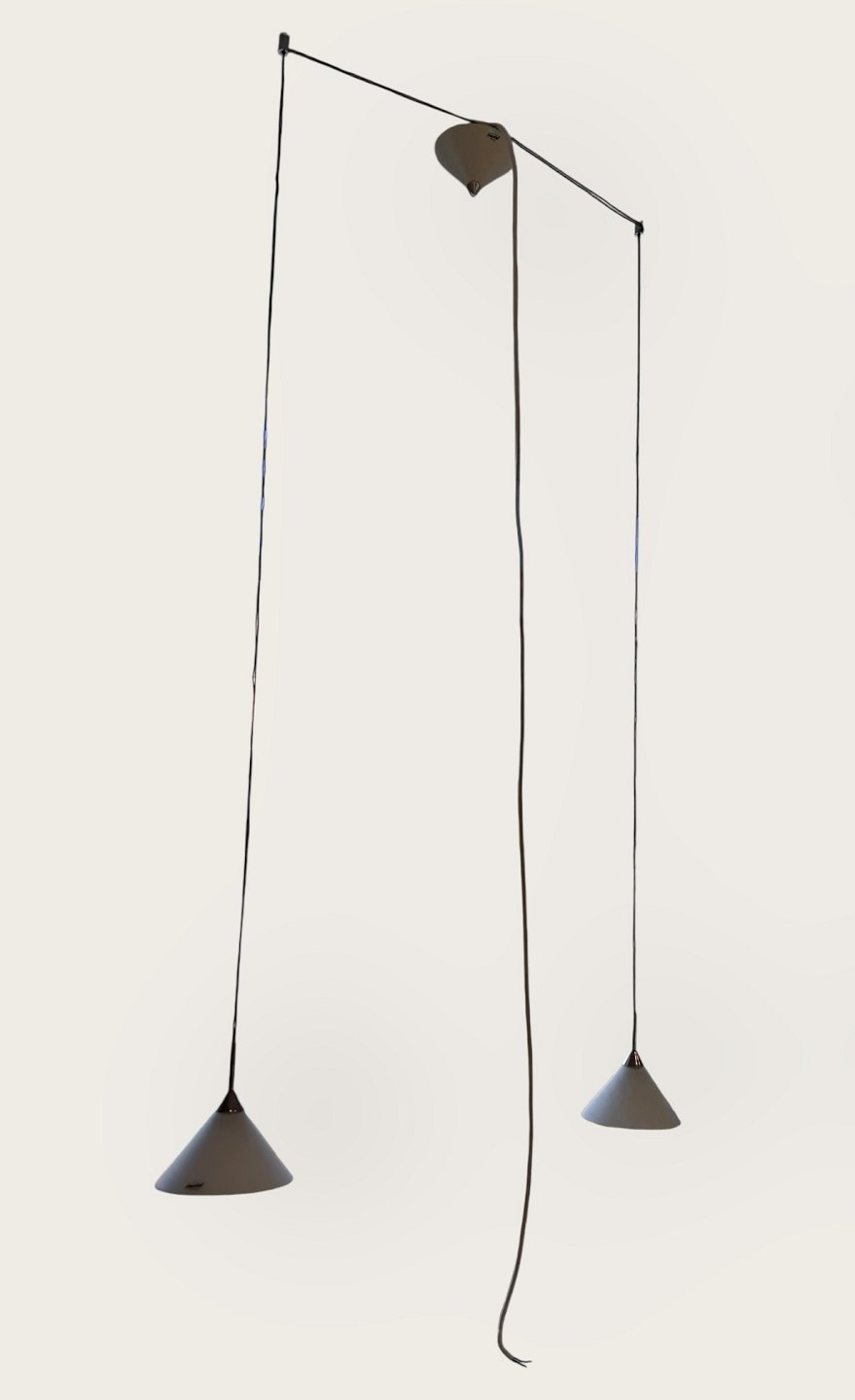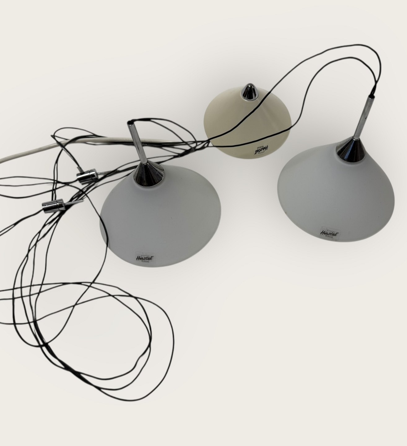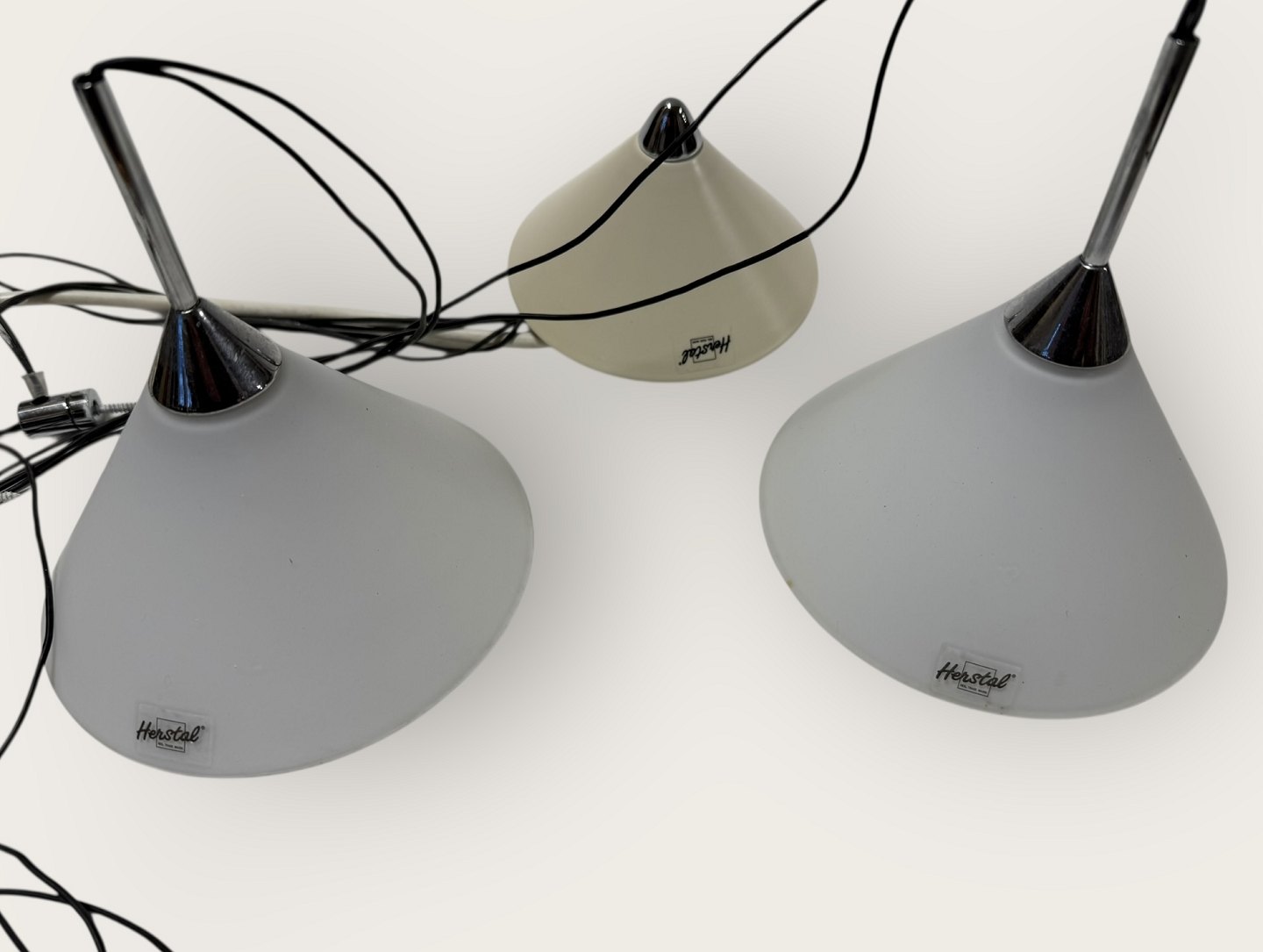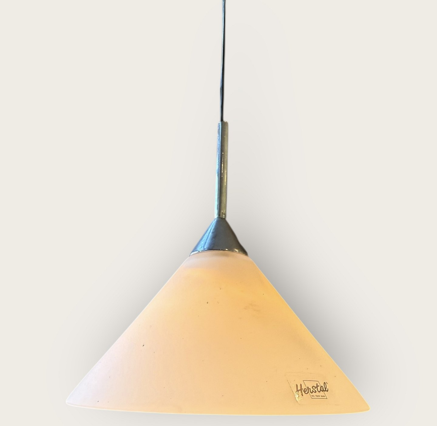Herstal Halo, pendelsæt ( to lamper med et ophæng - se foto), Glasskærmene er 13,5cm i diameter *Fin stand*