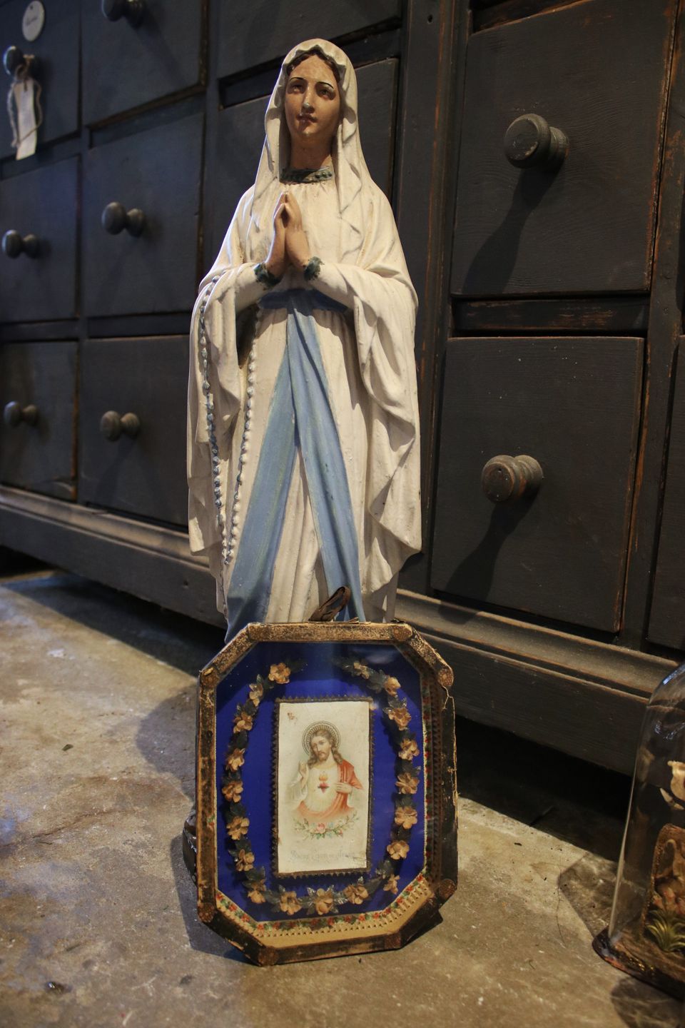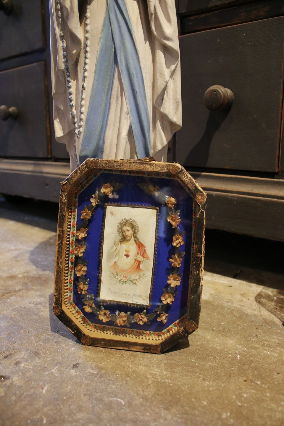 Dekorativt , gammelt religiøst billede ( med glas ) med Jesus billede