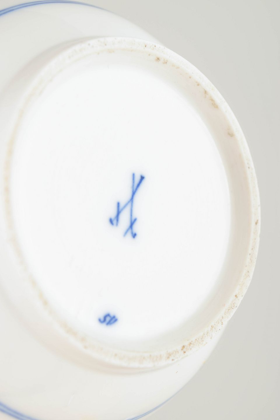 Mærkning: Stemplet med Meissens korslagte sværd; sukkerkrukken annulleret med én indridset streg (2. sortering).