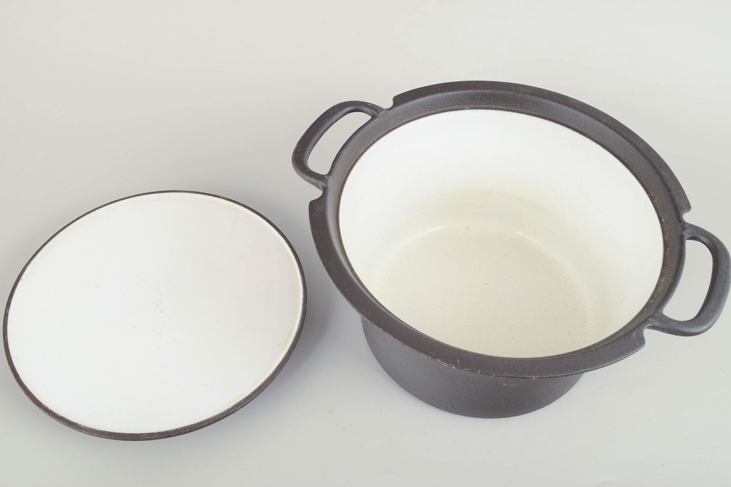 Stor støbejernsgryde med låg, 1970/80’erne.