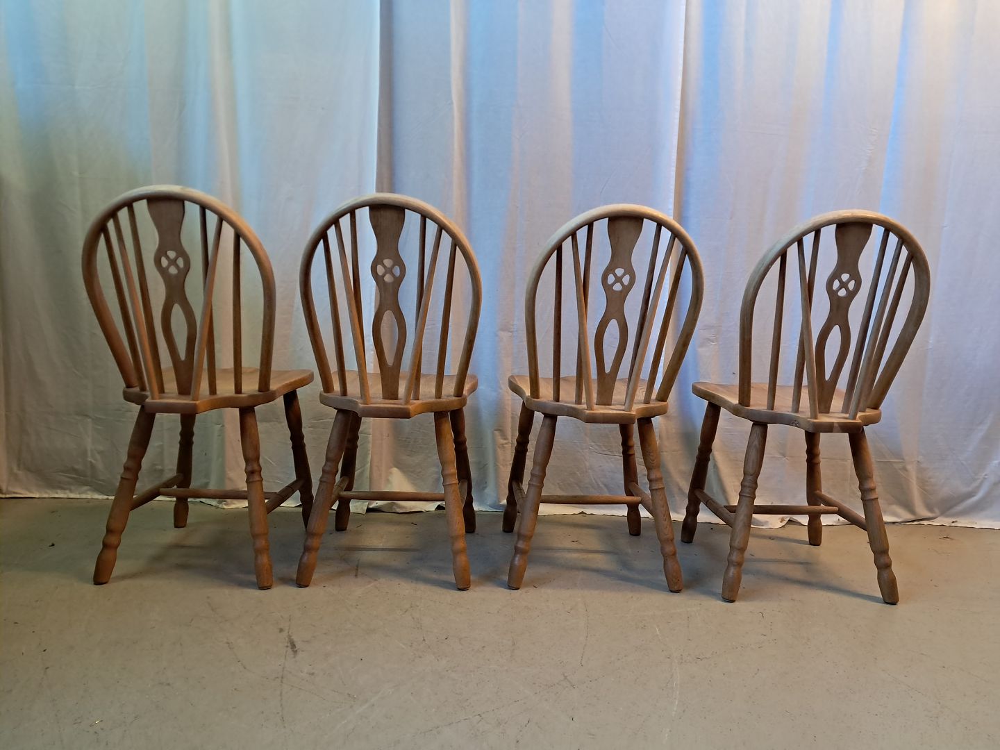 4 Winsor stole i massivt egetræ, fra 1970erne.