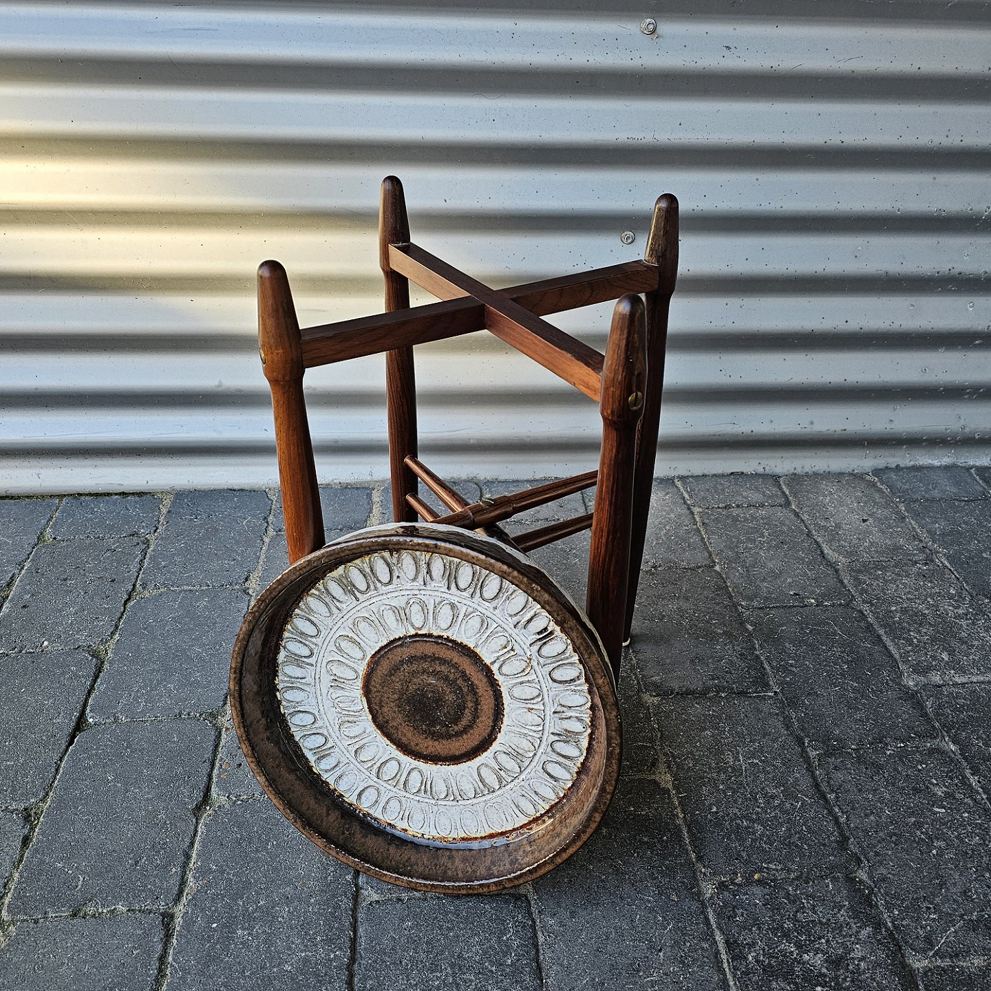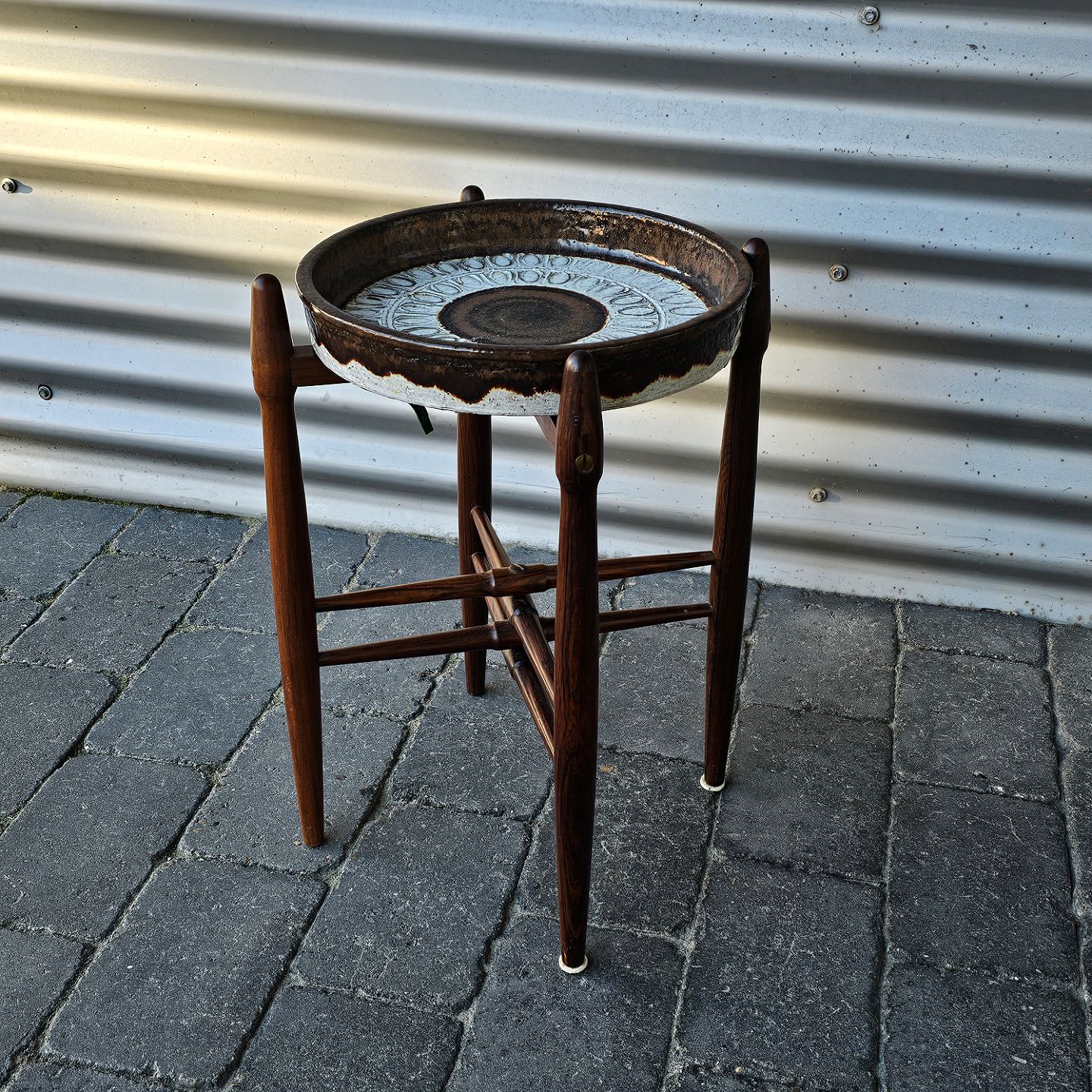 Rundt bord af palisander med rundt fad i keramik
