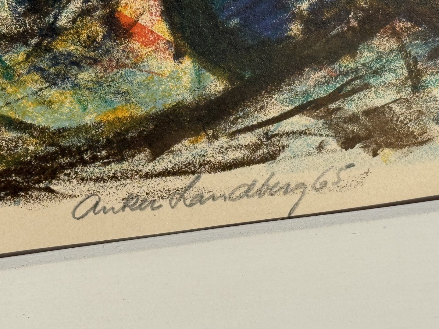 Anker Landberg, Litografi i ramme, Fiskere ordner garn, signeret Anker Landberg 65, Mål: 67x46cm, Mål med ramme: 82x63cm *fin stand*