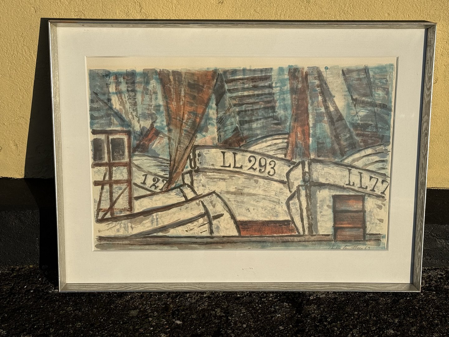 Anker Landberg, Lithograph in frame, Fishing boats, signed Anker Landberg 63, Dimensions with frame: 79x58cm *The lithograph has sunk a little in the passepartout frame, otherwise in fine condition*