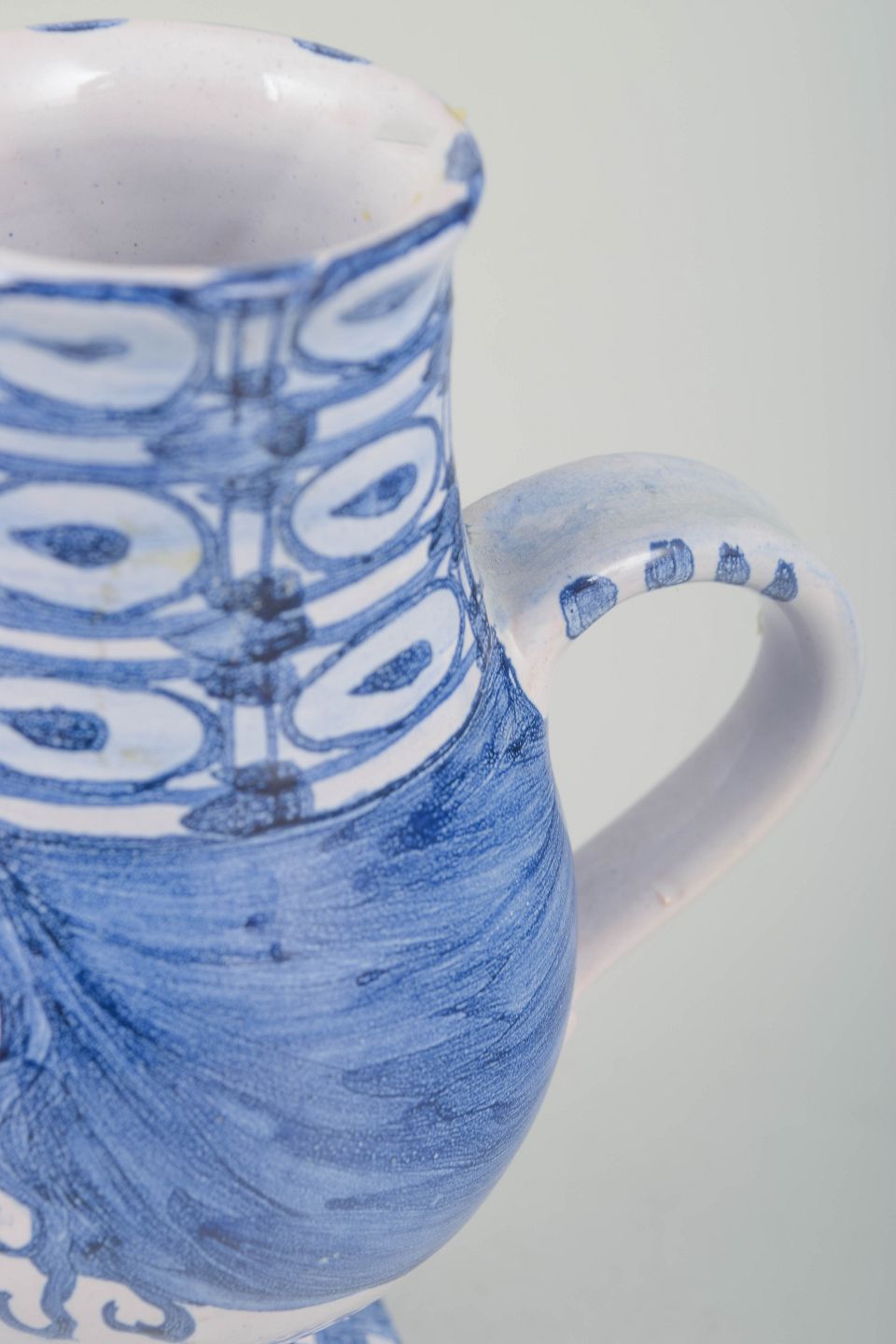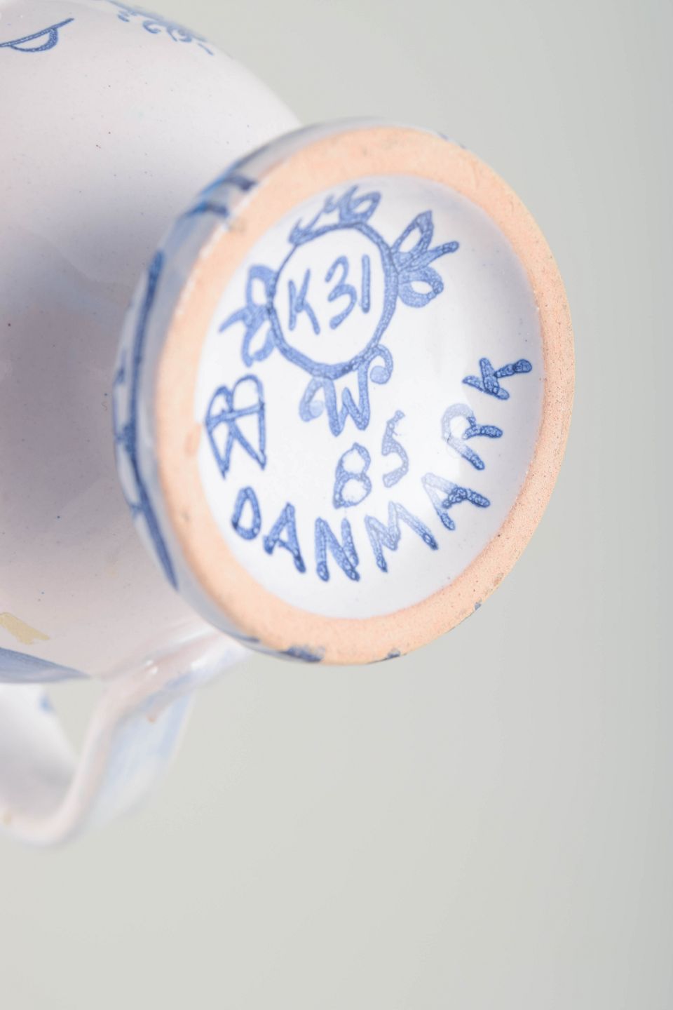 Håndlavet keramisk figur i form af en kvinde med kande, rigt dekoreret i klassisk Wiinblad-stil med detaljeret bemaling og karakteristisk udtryk.