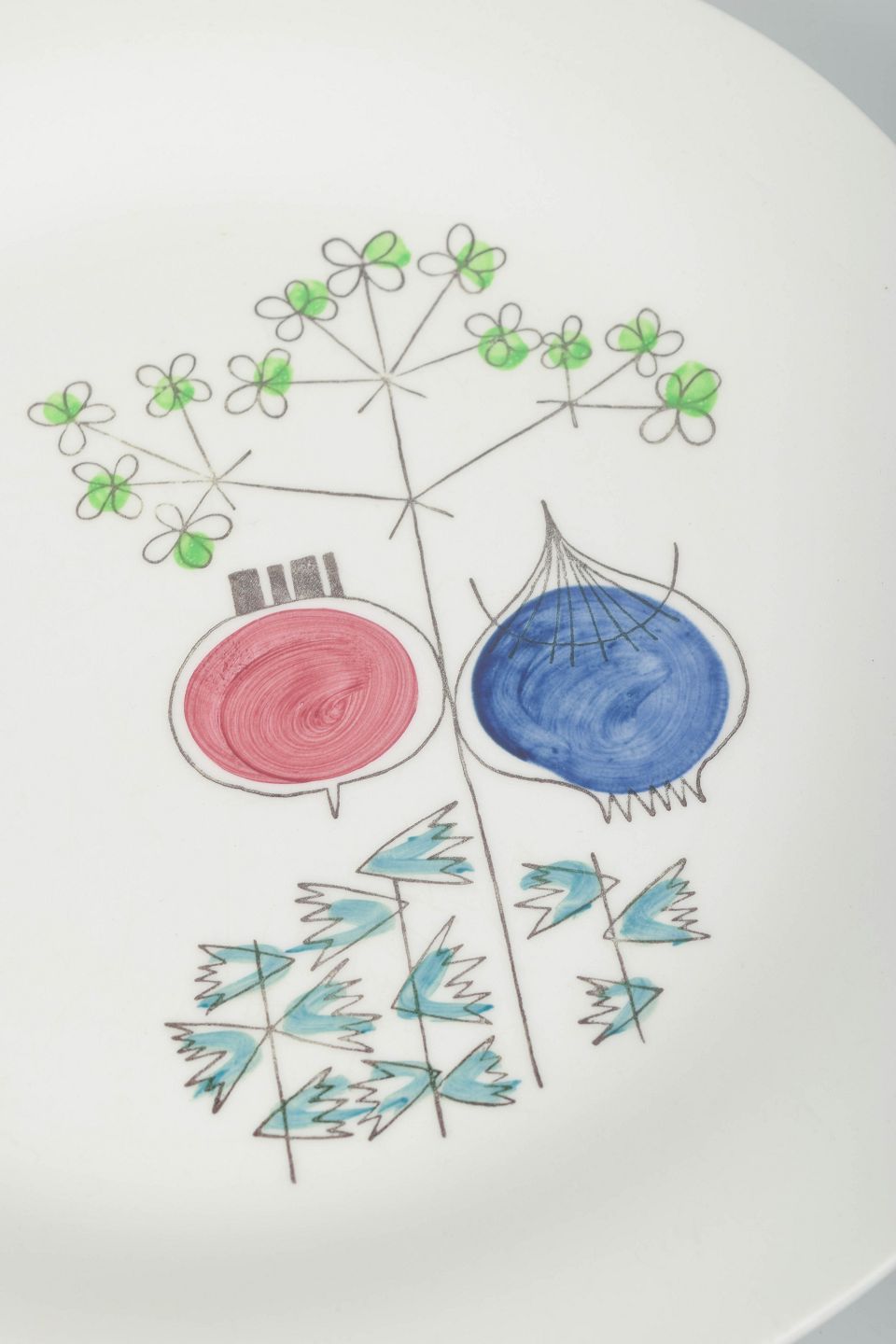 Marianne Westman (1928–2017) was one of Rörstrand’s most beloved designers during the 1950s and 60s, responsible for iconic series such as “Picknick” and “Mon Amie”. Her work is characterised by playful motifs, clear colours and a modernist expression that elevated everyday tableware to decorative design pieces. Today, her designs are highly sought after by collectors of Scandinavian ceramics and design.
