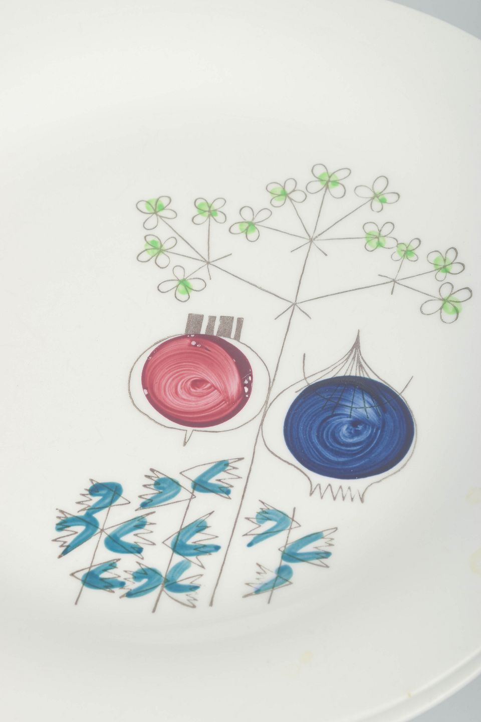 Marianne Westman (1928–2017) was one of Rörstrand’s most beloved designers during the 1950s and 60s, responsible for iconic series such as “Picknick” and “Mon Amie”. Her work is characterised by playful motifs, clear colours and a modernist expression that elevated everyday tableware to decorative design pieces. Today, her designs are highly sought after by collectors of Scandinavian ceramics and design.
