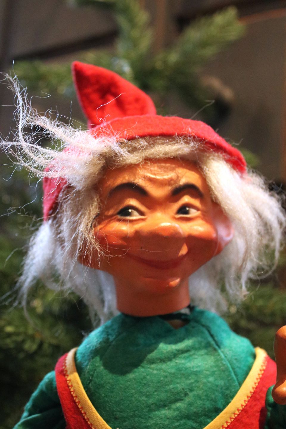 2 gamle butiksnisser med filt tøj og ansigt i bemalet papmache.