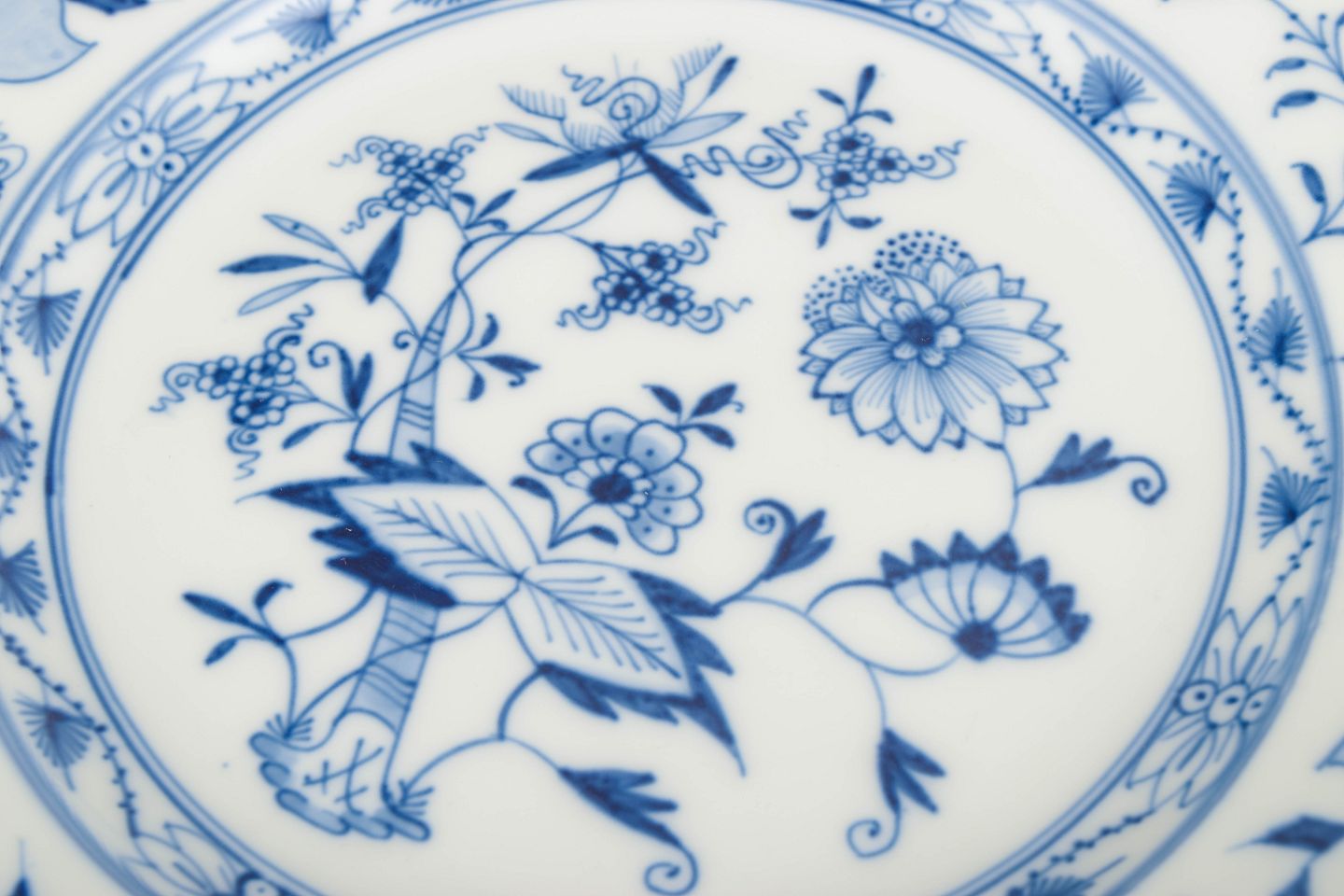 Meissens Zwiebelmuster blev introduceret i 1730’erne og er et af verdens mest kendte porcelænsdesigns. Dekorationen er håndmalet i koboltblå underglasur og har været i kontinuerlig produktion i snart 300 år. De tidlige 1900-tals eksemplarer er særligt værdsatte for deres håndværksmæssige kvalitet og skarpe maleri.