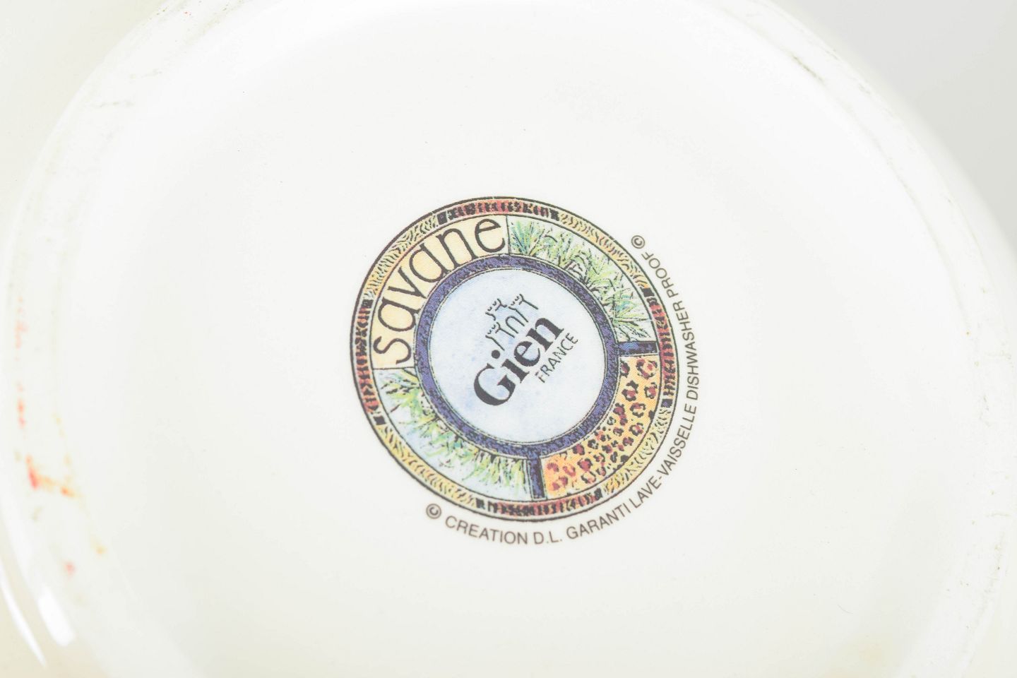 Faïencerie de Gien blev grundlagt i 1821 og er blandt Frankrigs mest traditionsrige fajancefabrikker. I 1970’erne og 80’erne lancerede Gien en række farverige og motivrige serier, ofte med stærke grafiske eller naturinspirerede dekorer som “Savane”. Disse værker kombinerer klassisk fransk fajancetradition med et mere moderne og dekorativt formsprog.