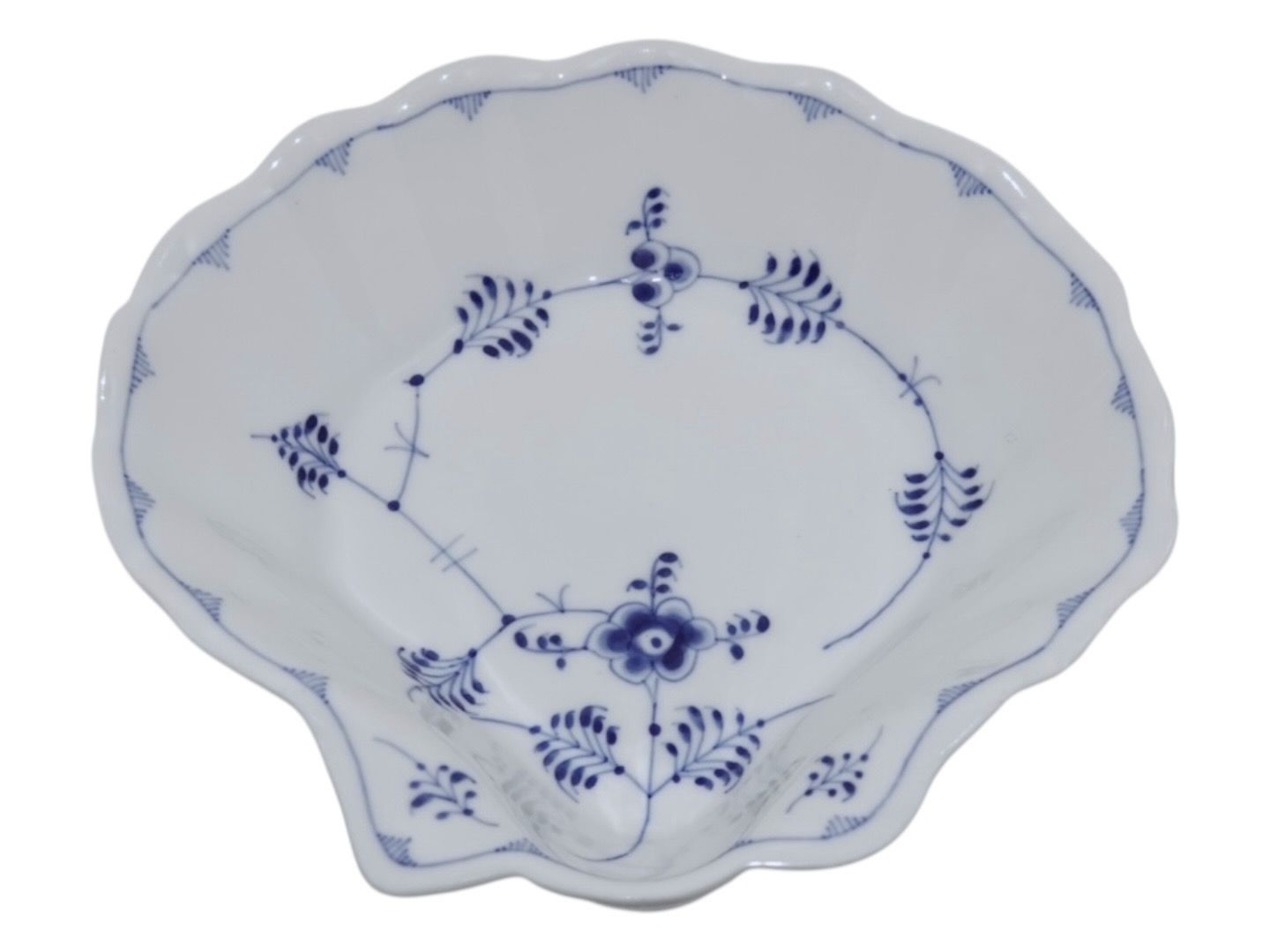 Royal Copenhagen Musselmalet Riflet, sjælden muslingeformet skål.