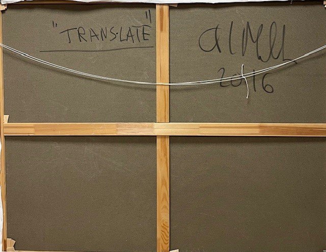 "Translate" Stort flot oliemaleri i sort svæveramme.