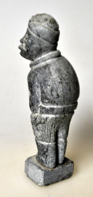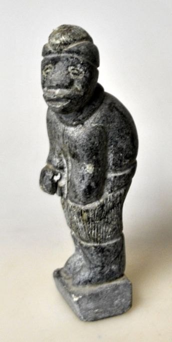 Grønlandsk fedtstenfigur, 1985. En stående mand. Signeret ML 85. H.: 11,3 cm.