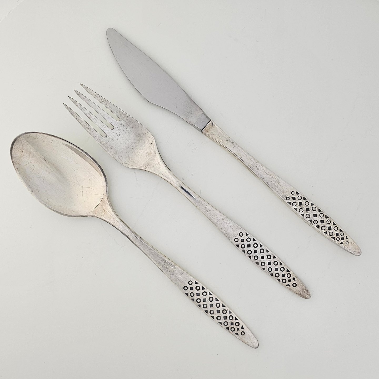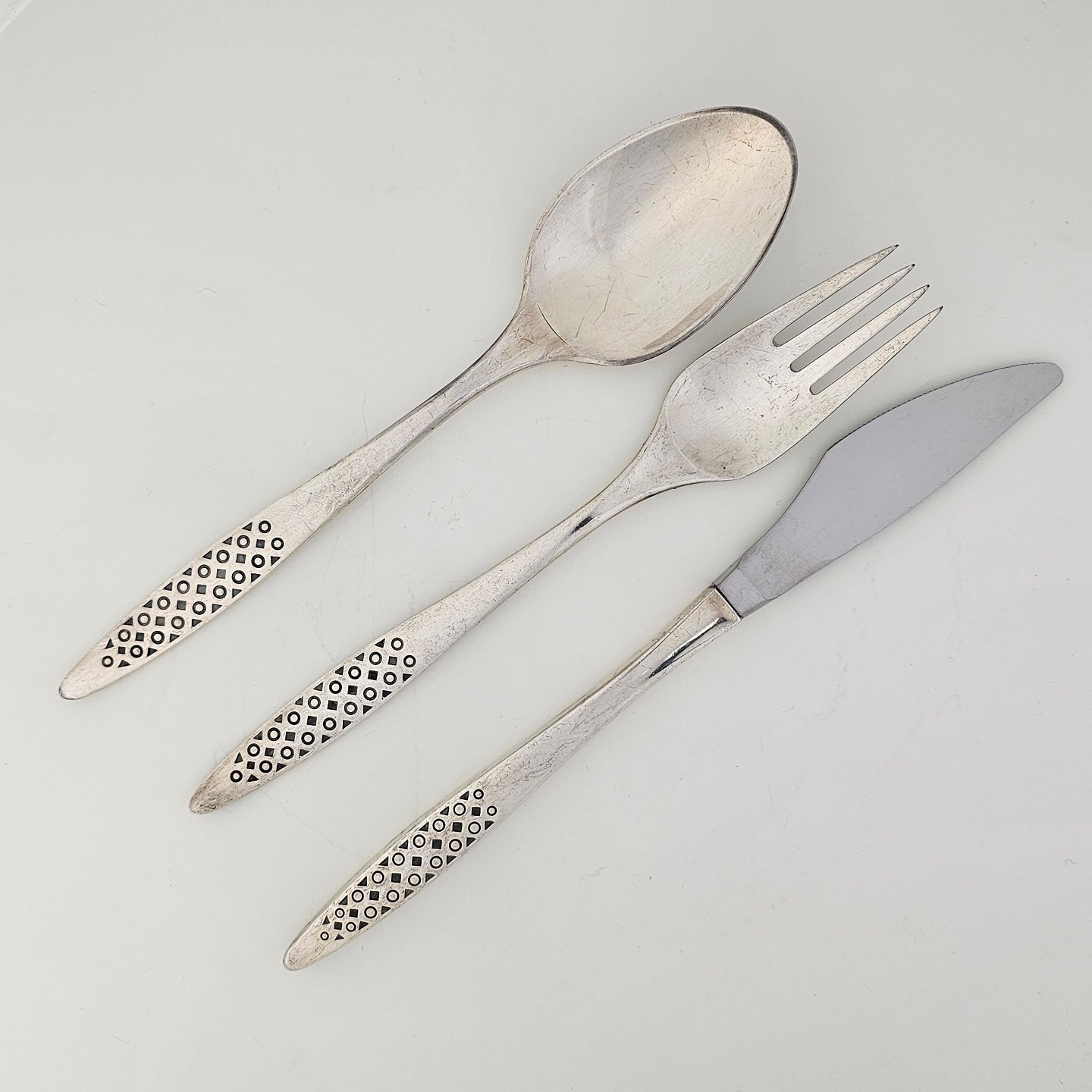 Text available in Danish: Bestik i pletsølv fra serien Venedig