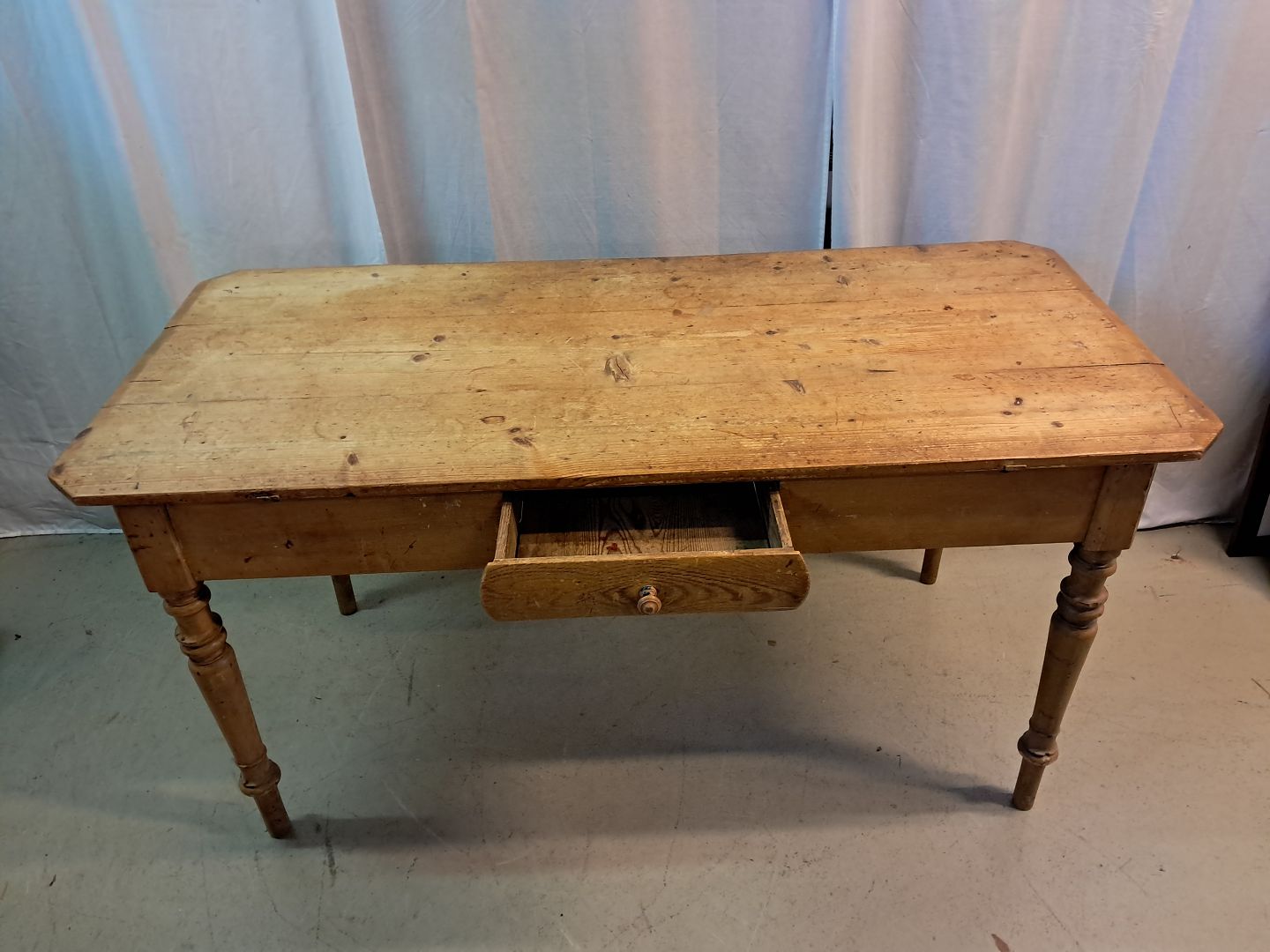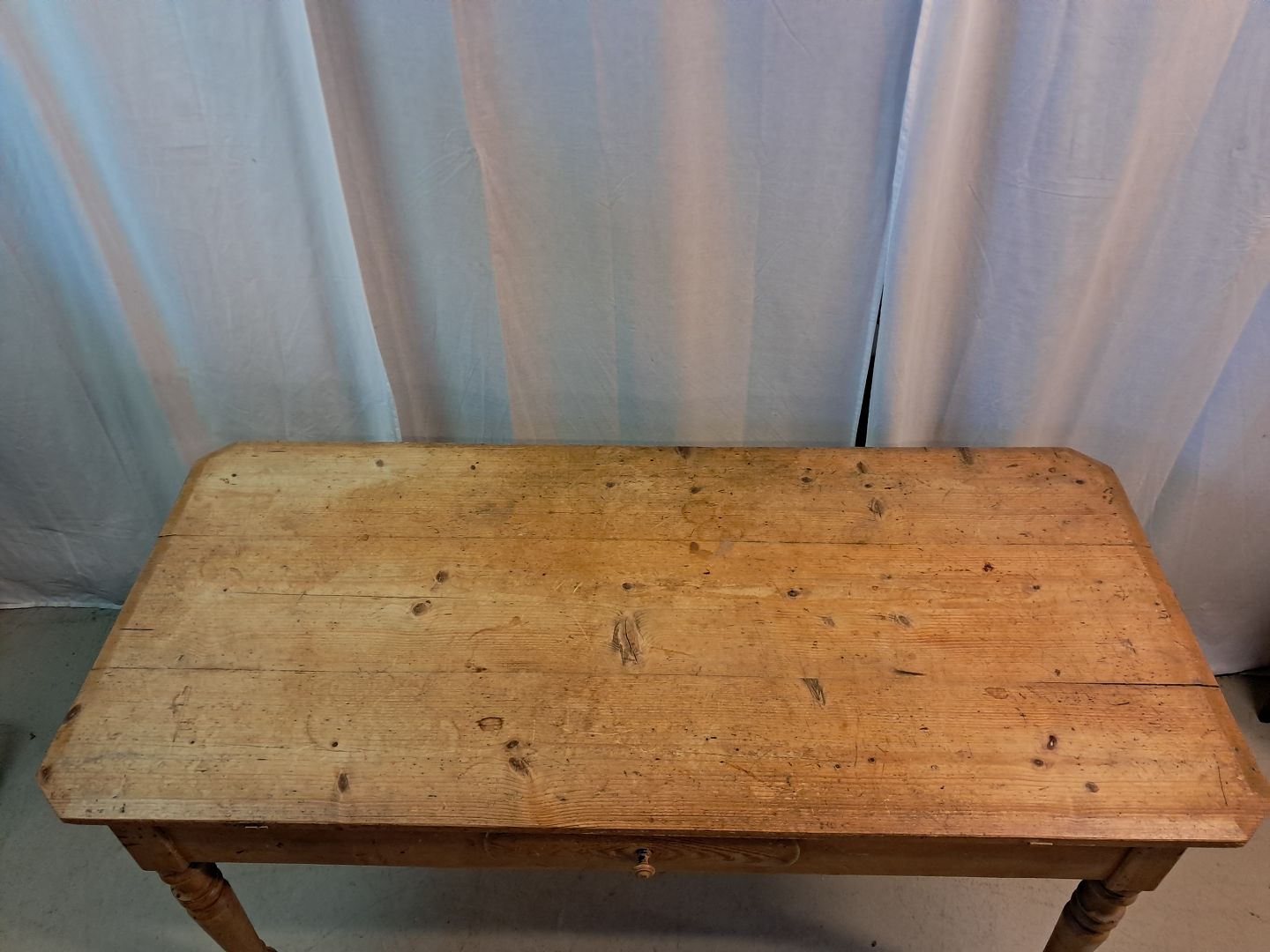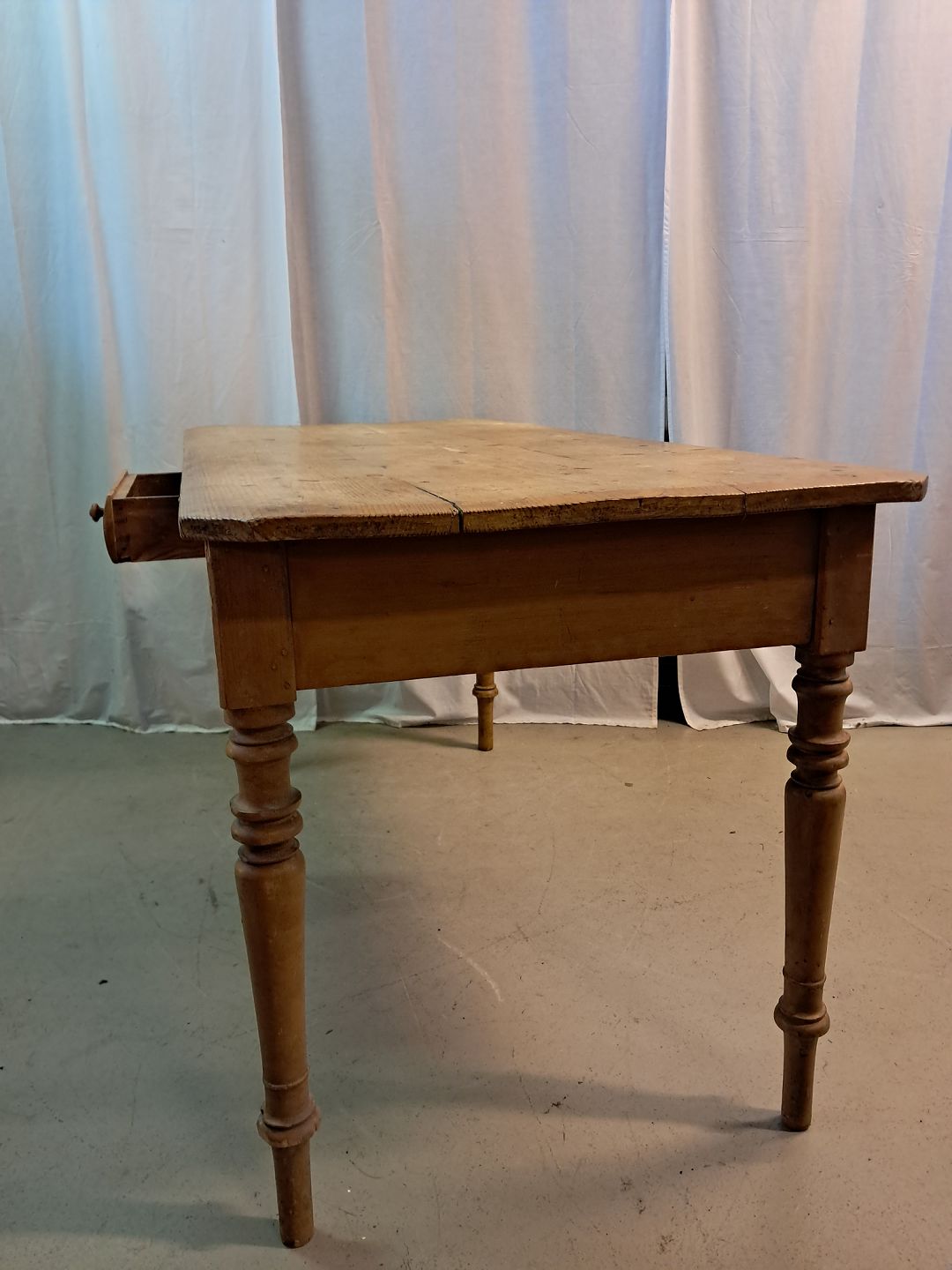 Bord med skuffe i massivt fyrretræ, fra 1910erne.
