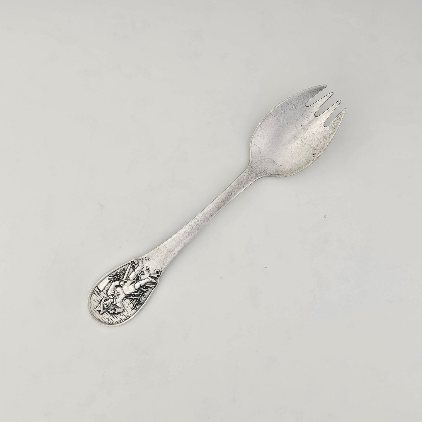 H.C. Andersen barnegaffel i sølv med motiv fra eventyret Grantræet