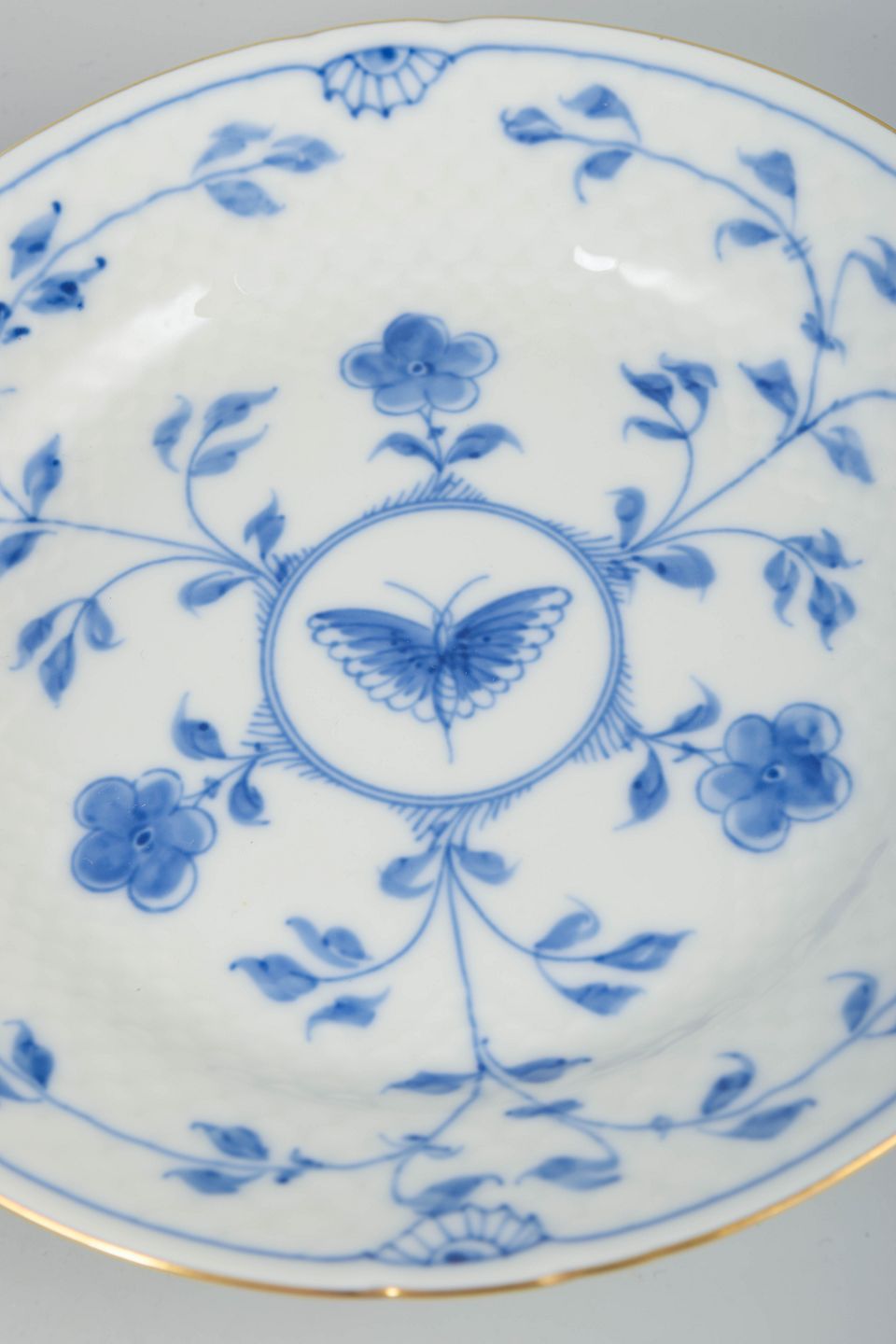 Founded in Copenhagen in 1853, Bing & Grøndahl is renowned for its hand-painted porcelain and its classic blue decorative motifs. The butterfly pattern is among the factory’s most poetic designs, combining nature-inspired elements with refined period detailing such as the gold edging.