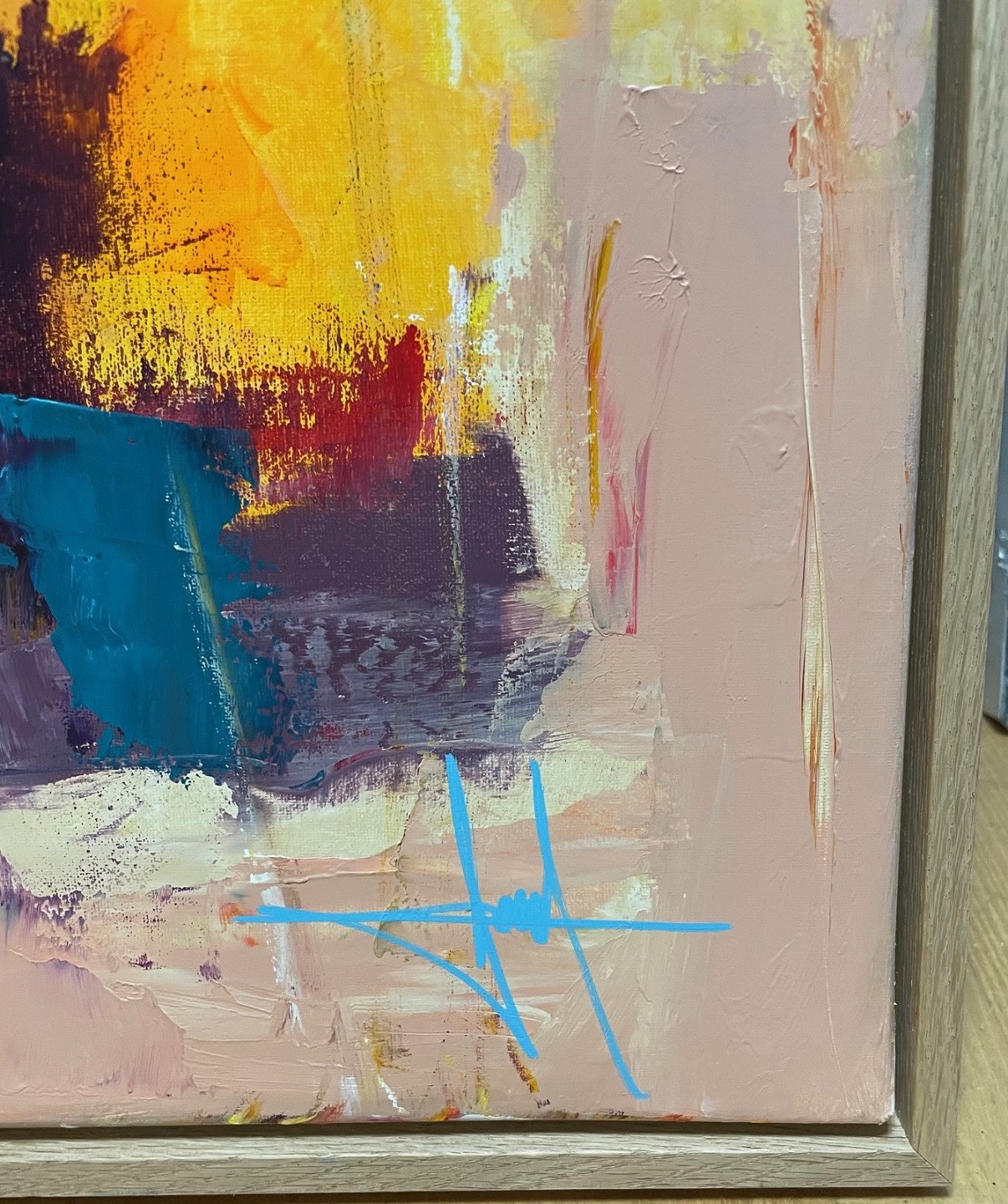 "Komposition" Flot moderne maleri i massiv egetræs svæveramme fra Bogø Design.