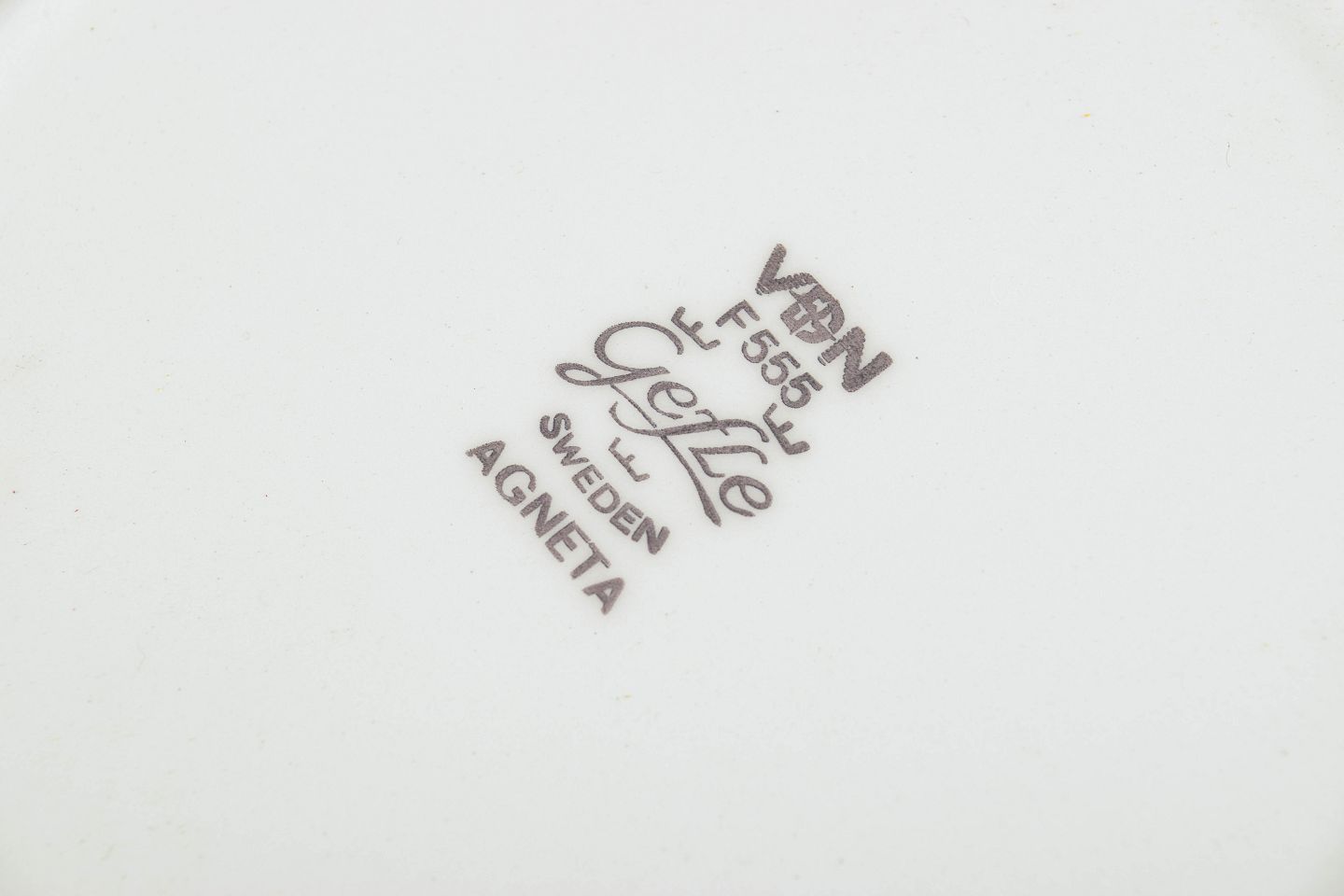 Gefle (Gefle Porslinsfabrik), grundlagt i 1910 og senere en del af Upsala Ekeby, skabte i 1960’erne og 70’erne en række populære stel med stærke grafiske udtryk. Agneta-serien er blandt de mest kendte og afspejler fabrikkens tidstypiske kombination af klare farvefelter og botaniske motiver, som i dag gør serien eftertragtet blandt retro-samlere.