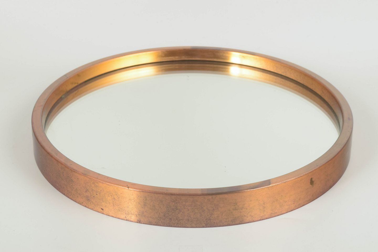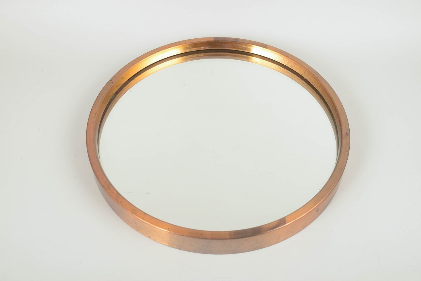 Elegant round designer mirror with a solid brass frame and crystal-clear mirror glass. The clean, modern shape reflects the Scandinavian design ethos of the 1970s, characterised by quality materials and refined simplicity.