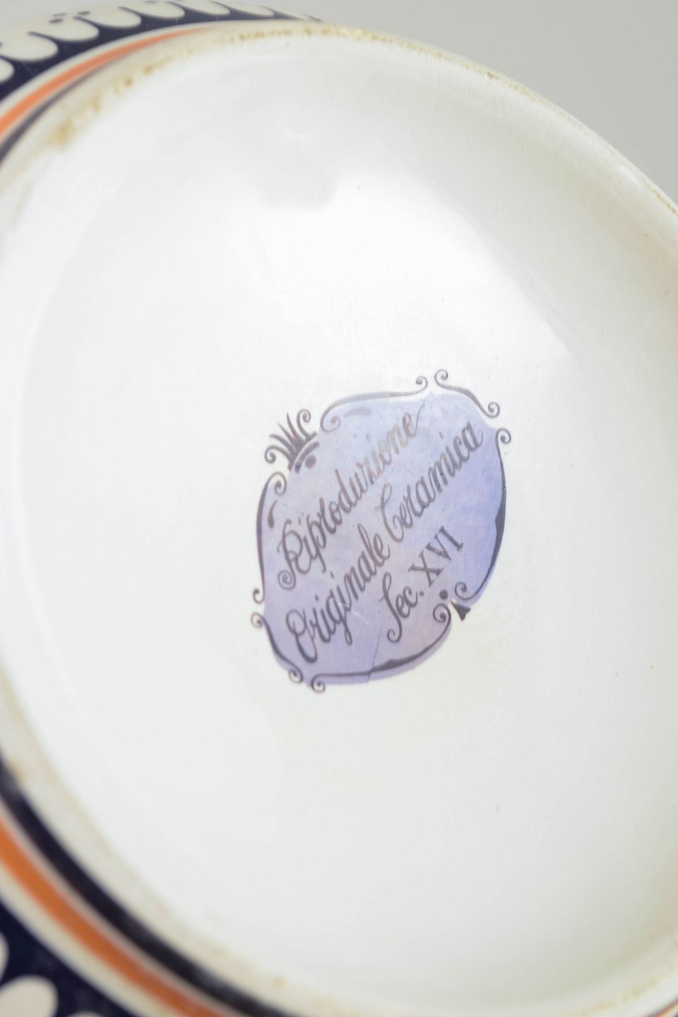 Italian majolica has long combined vivid colours, ornamental motifs, and historical references. During the 20th century, many workshops adopted the decalcomania technique to achieve highly detailed and repeatable surface designs, later fixed by low-temperature firing. The result is decorative ware that preserves the traditional majolica aesthetic while reflecting modern production methods.