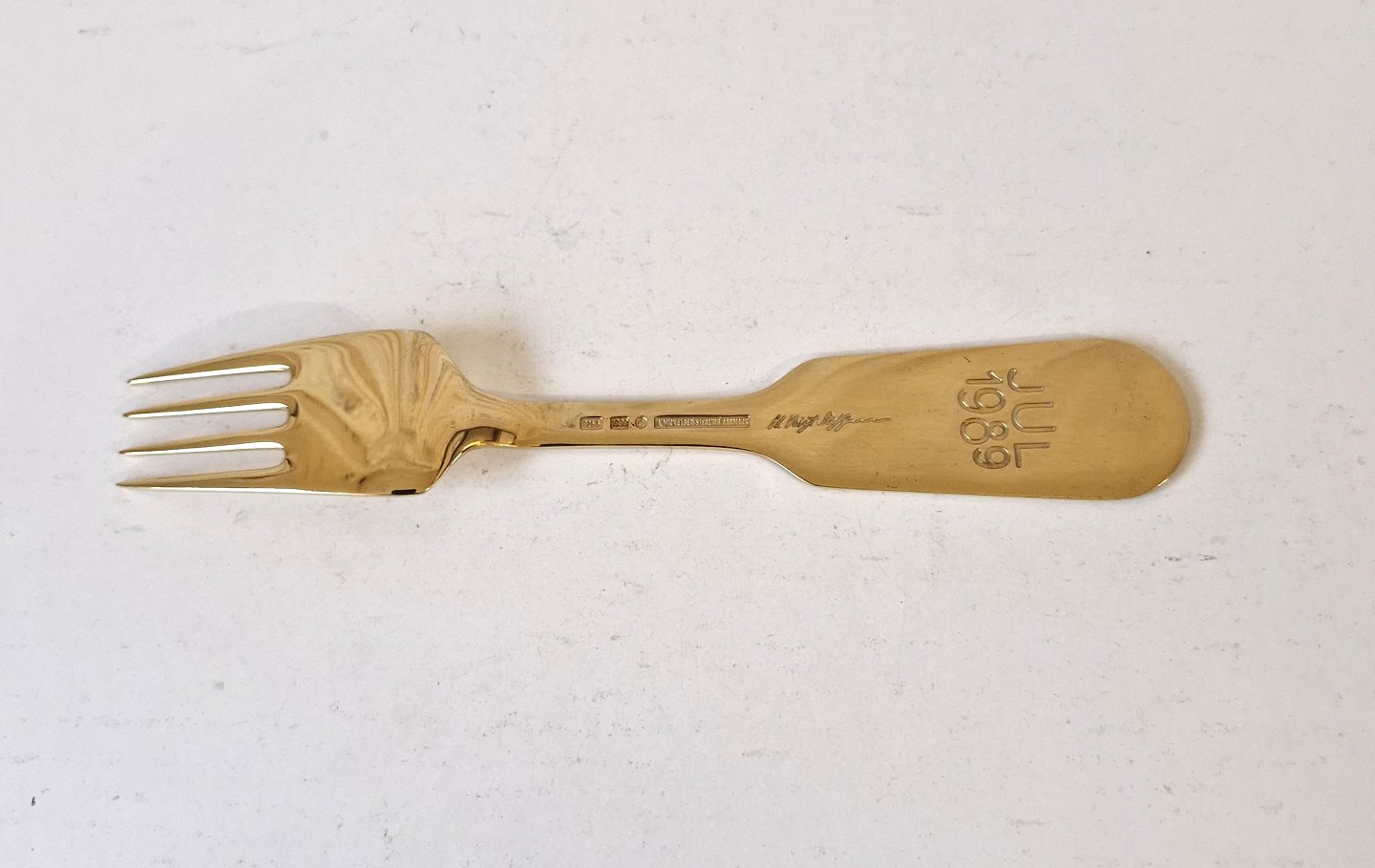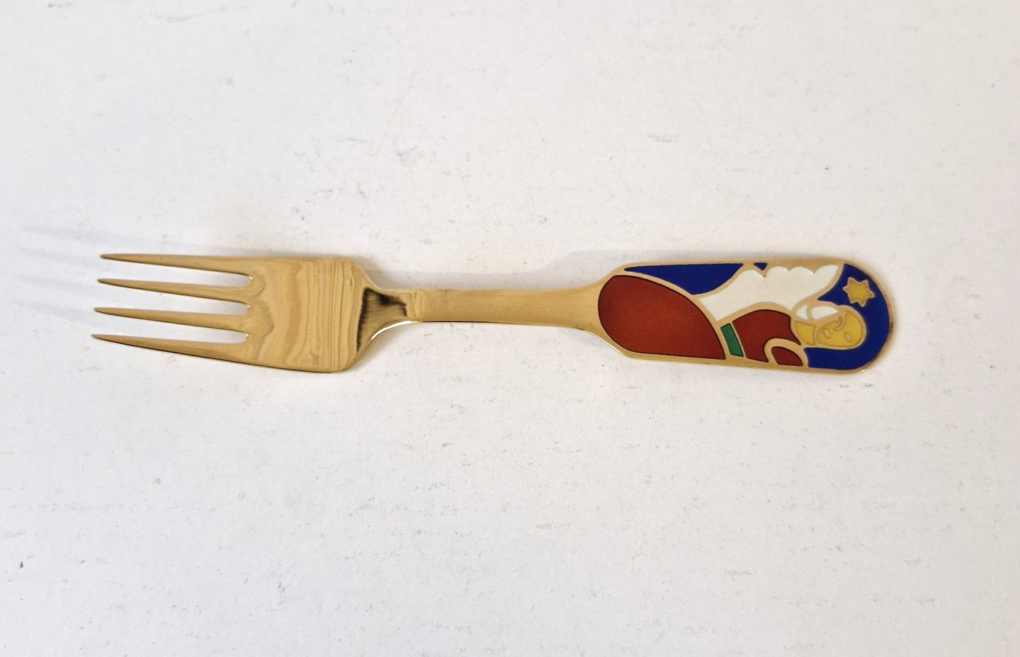 A.Michelsen Christmas fork in gold-plated sterling silver and enamel from 1989