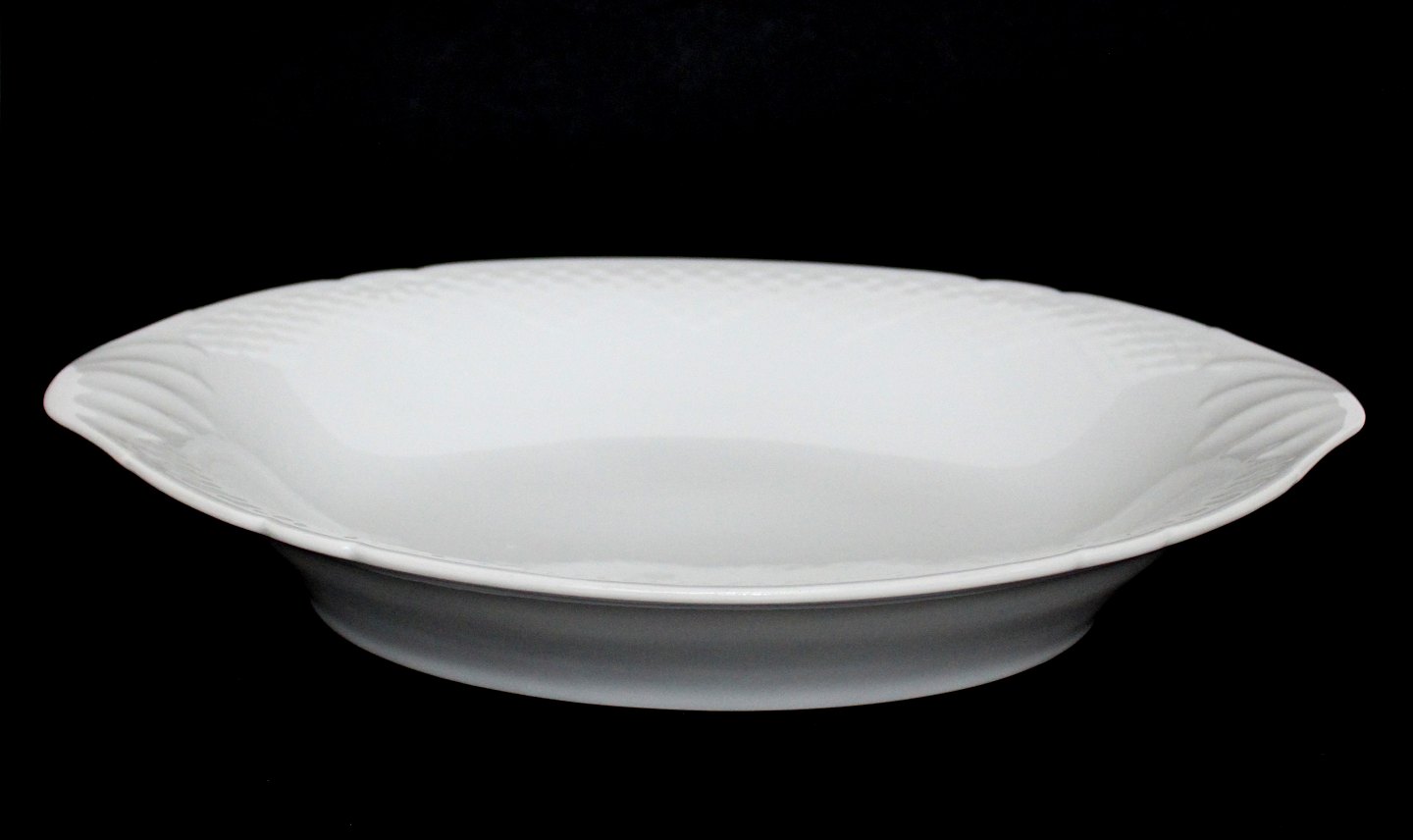 Bing & Grøndahl, Elegance, Stort ovalt brødfad meget sjælden og smukt. Nr. 195. Længde 34 cm. Bredde 24,5. Højde 5,5 cm. II. sortering. Enkelte overfladeridser efter brug. Pris: 975 kr.