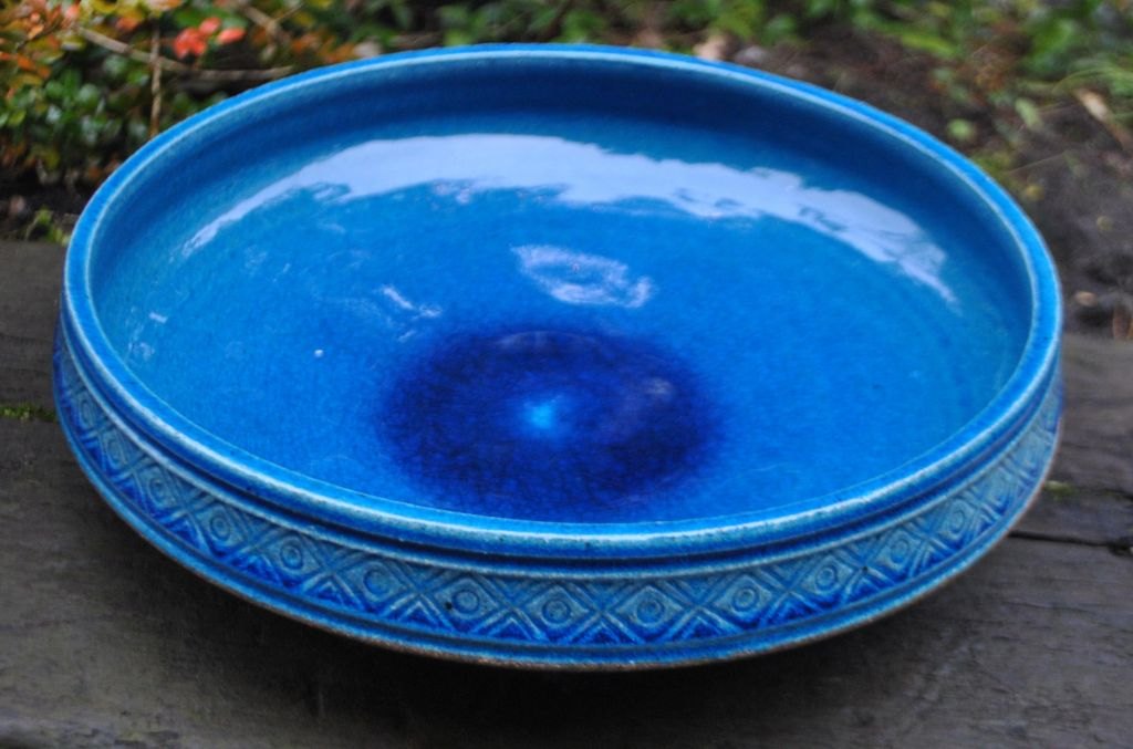 Kähler, Nils Joakim (1906 - 1979): Stort fad. Udført for H. A. Kähler, Næsteved. Turkis glasur. Med kantdekoration. Signeret. H: 9,5 cm. Dia.: 31 cm.